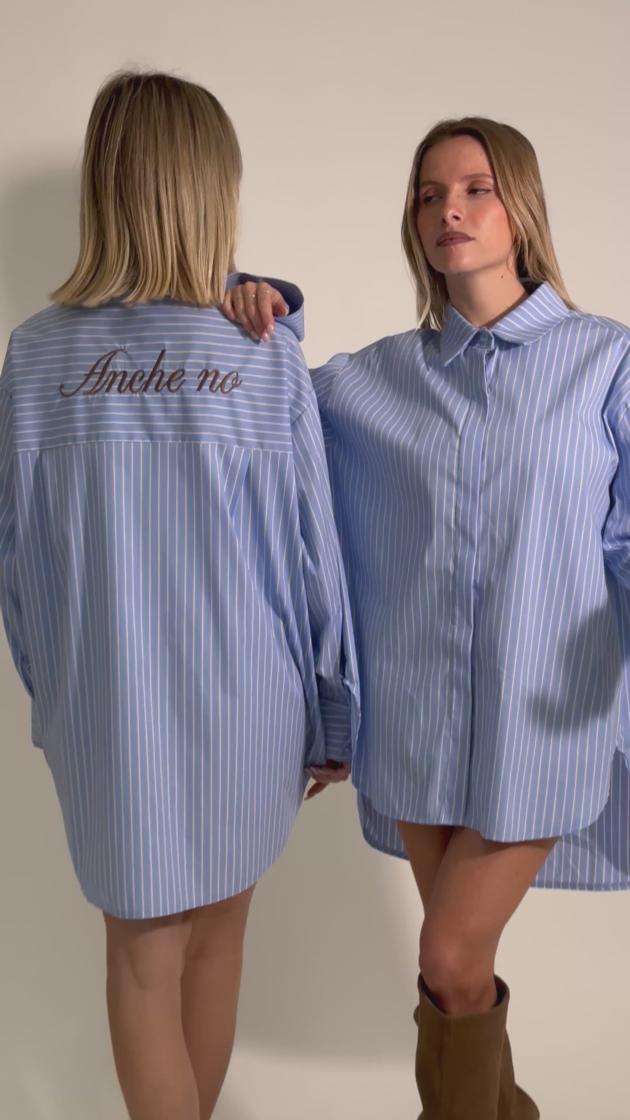 Camicia maxi a righe asimmetrica con ricamo posteriore "anche no" vestibilità over