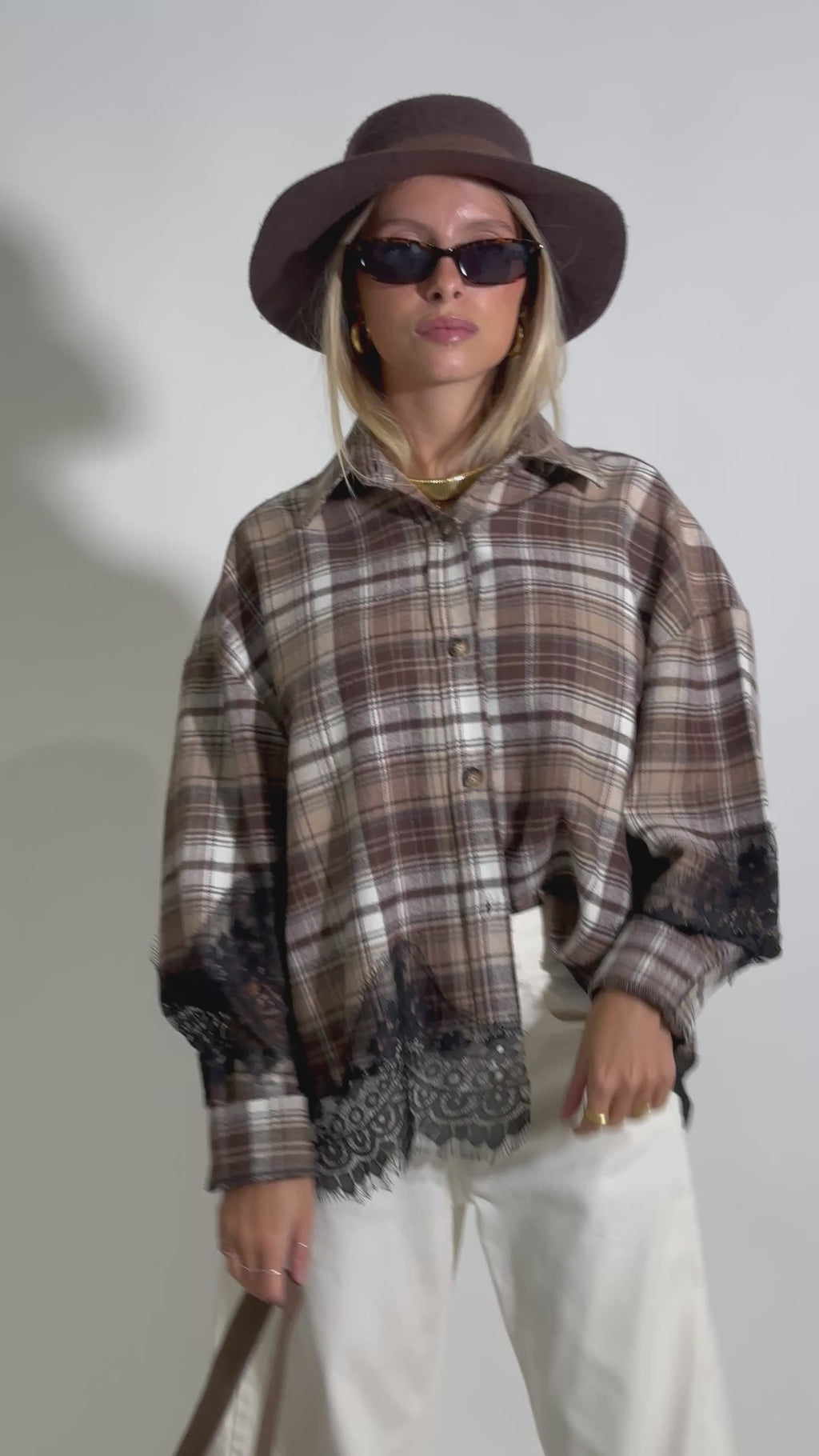 Camicia in check effetto flanella con inserti in pizzo