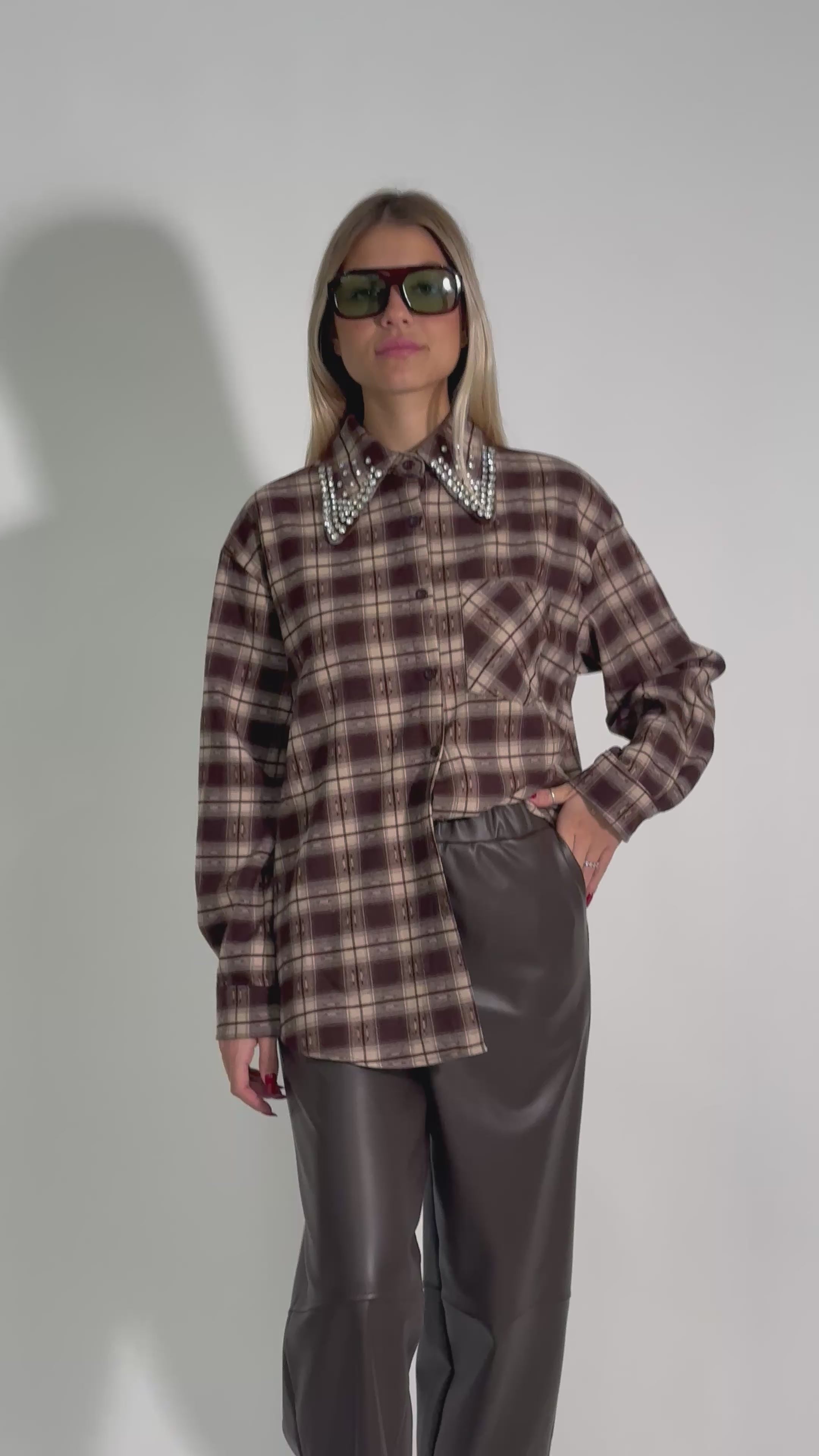 Camicia in madras super confortevole con collo a cristalli e fondo tondato.