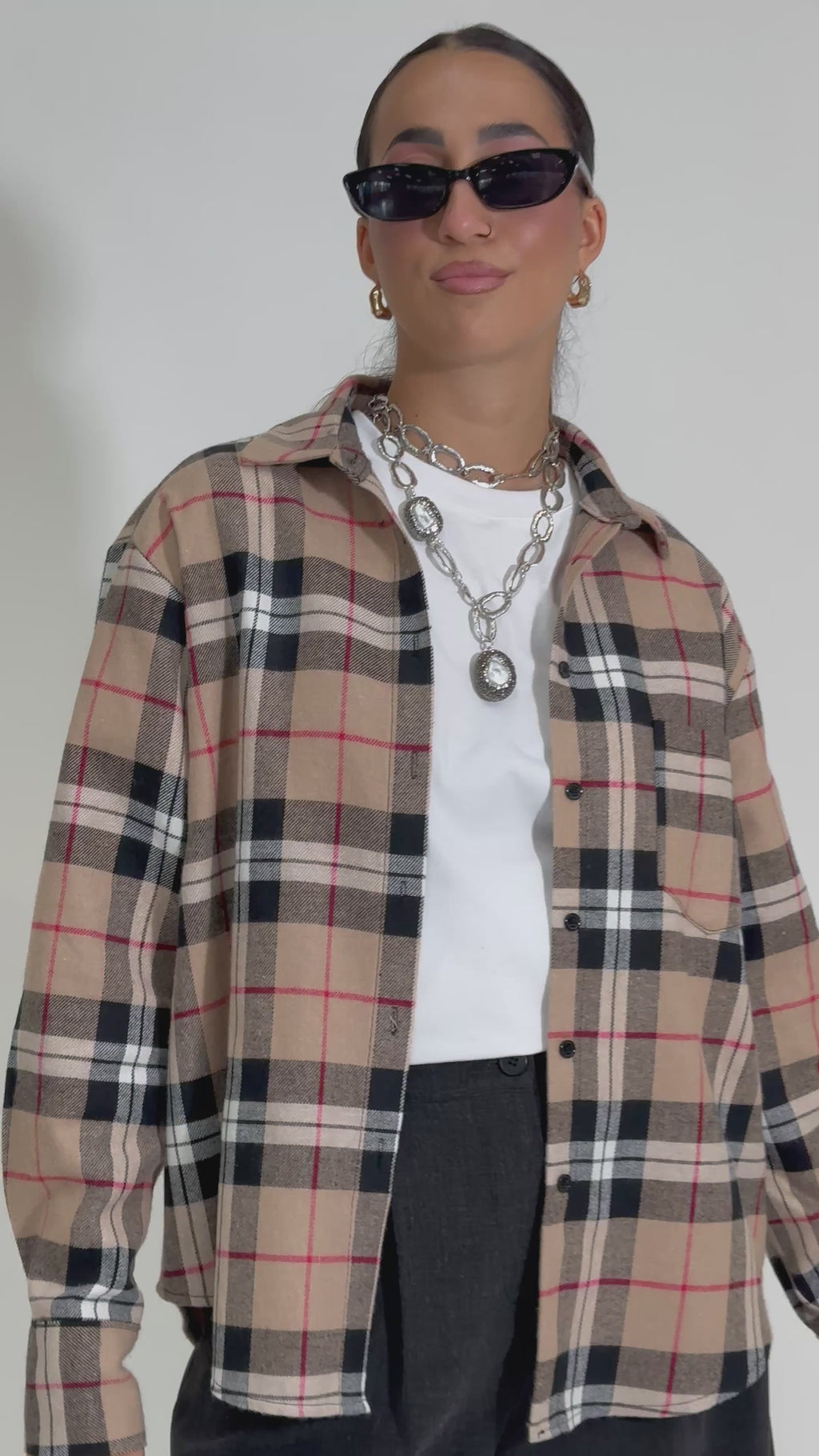 Camicia confortevole effetto flanella con tasca frontale e fondo tondato.
