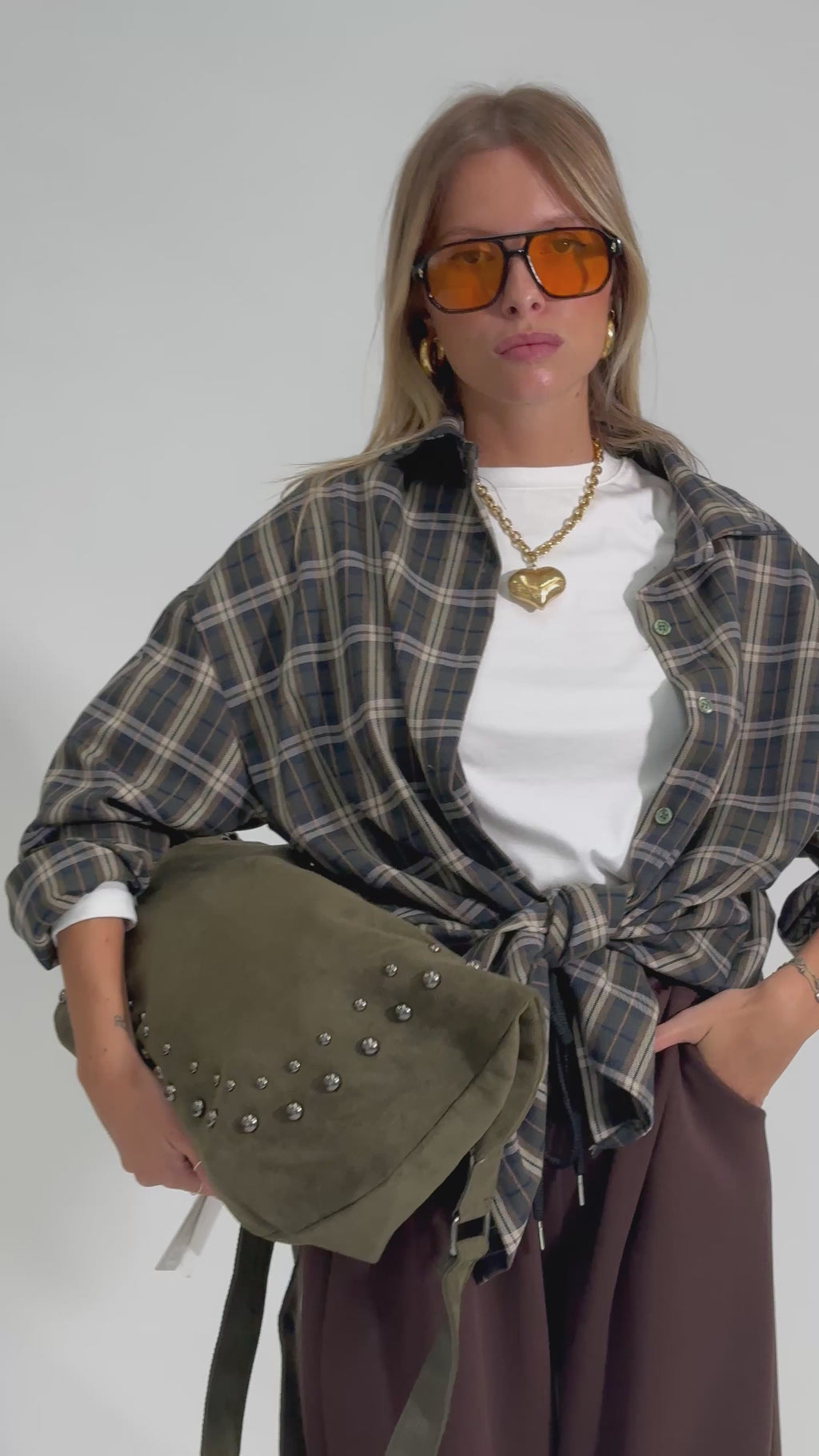 Camicia in stampa madras dal taglio over con fondo tondato.
