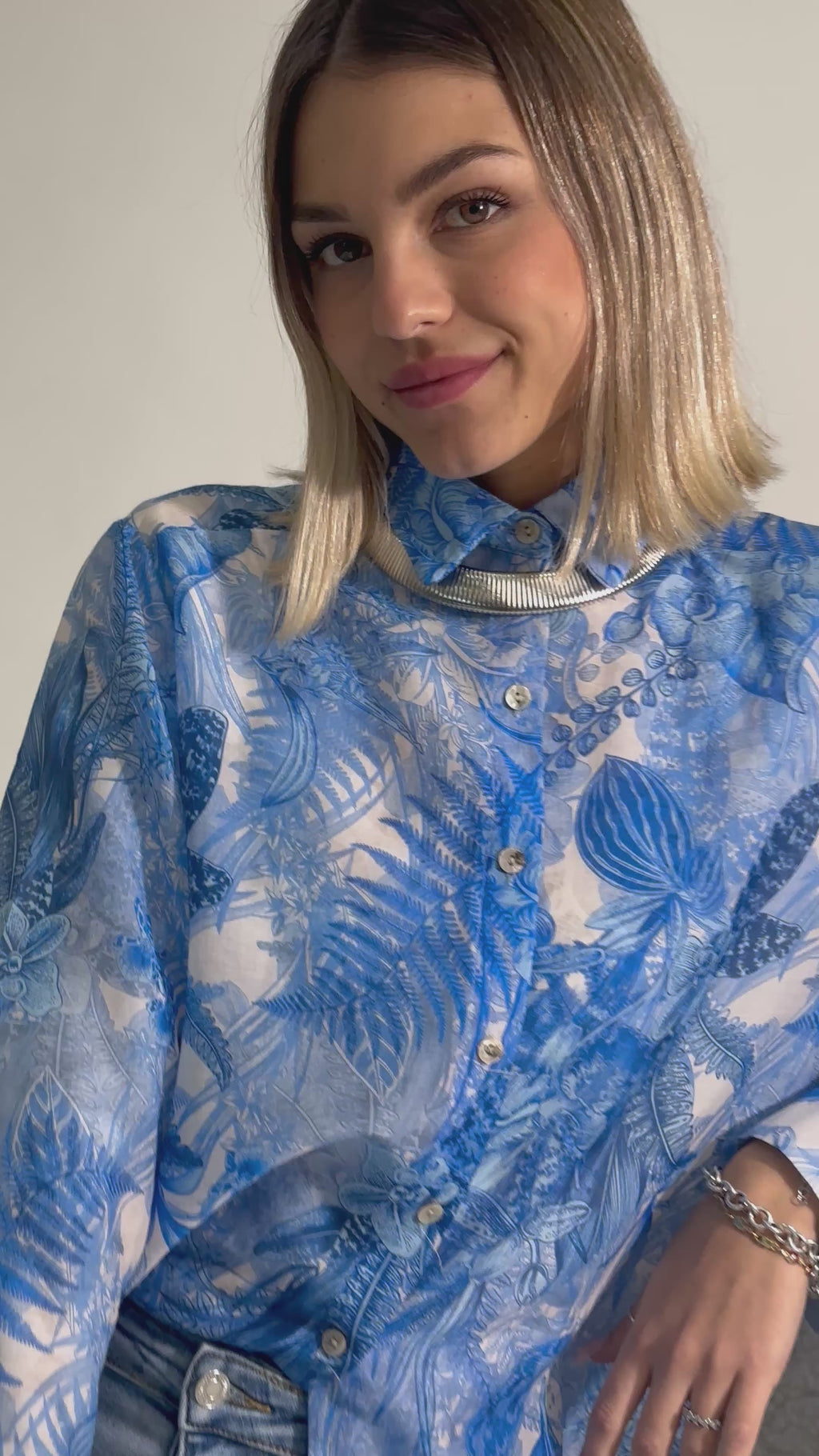 Camicia in misto seta con fantasia, vestibilità comfort.