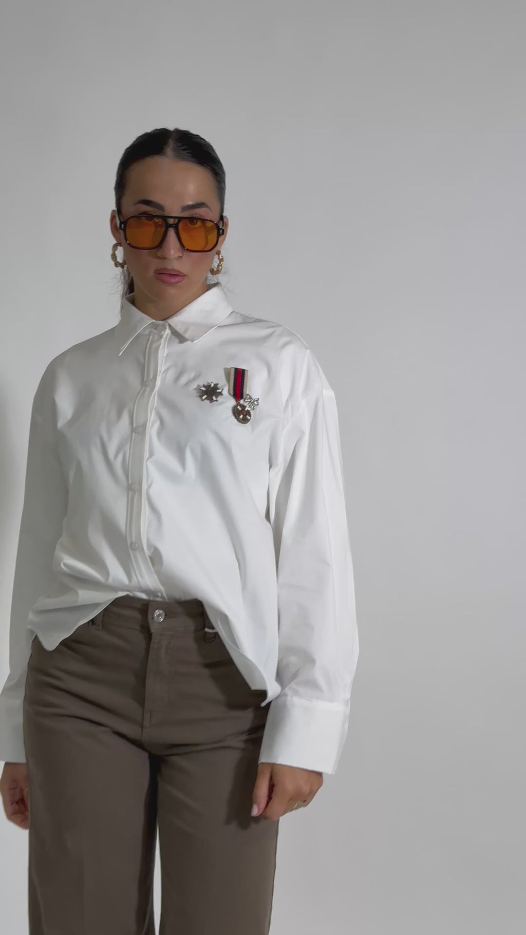 Camicia in popeline di cotone dal taglio dritto con spille removibili.