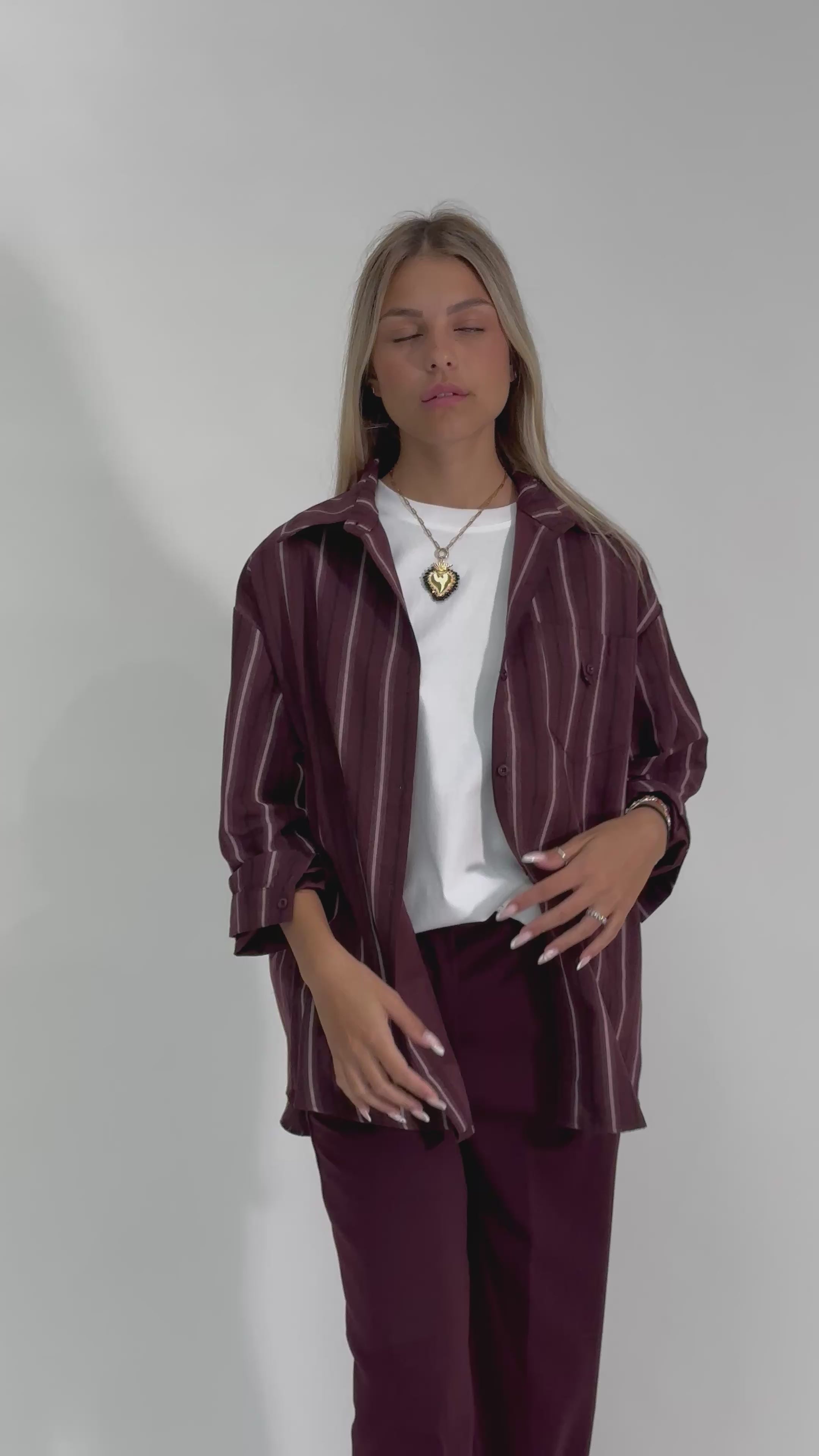 Camicia dal taglio regular con trama a righe, fondo tondato e taschino frontale.