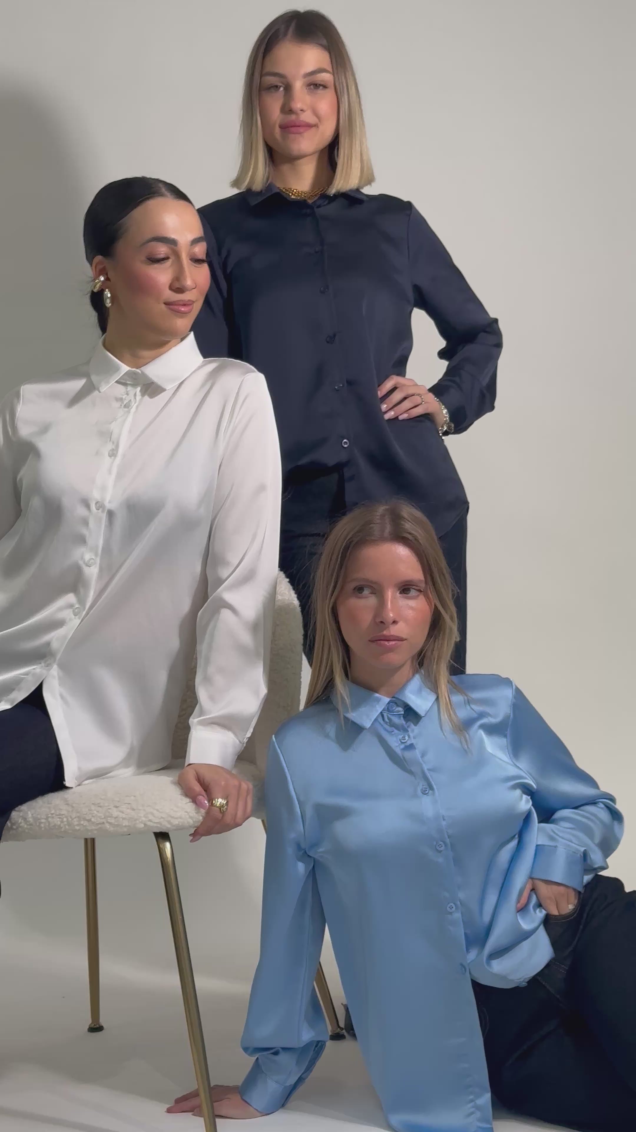 Camicia effetto satin, vestibilità morbida.