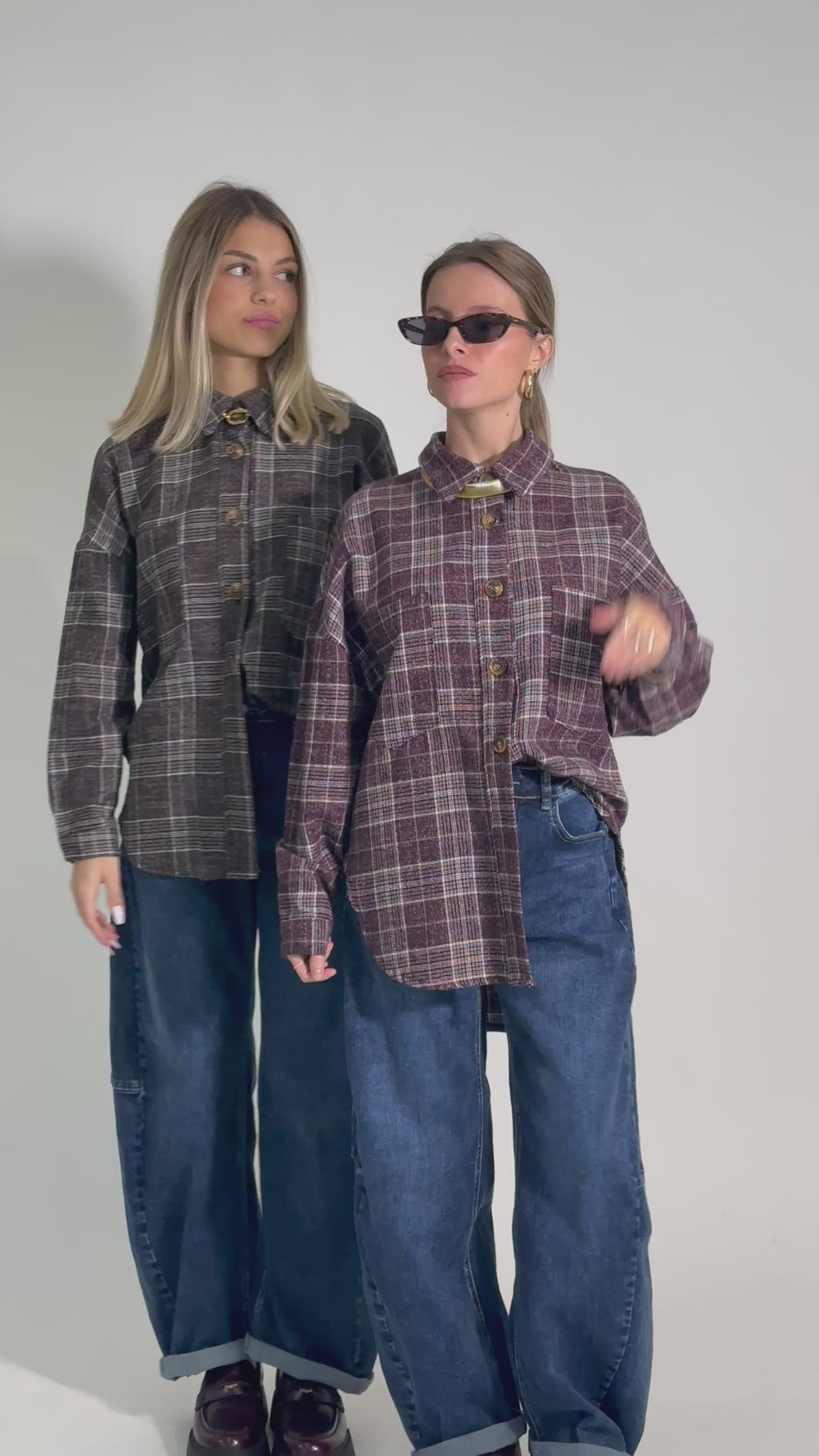 Camicia confort in fantasia con fondo tondato e tasche frontali.