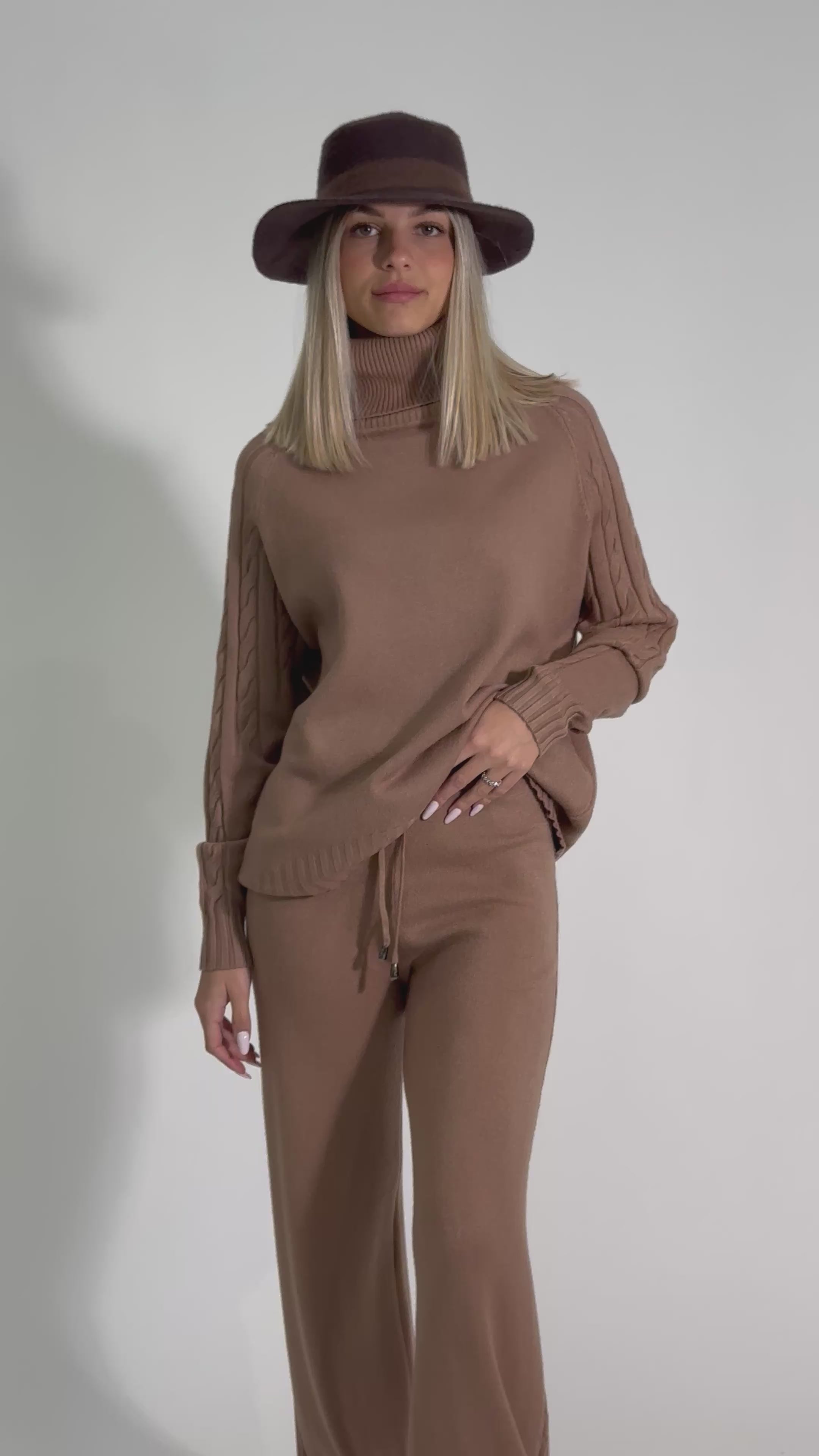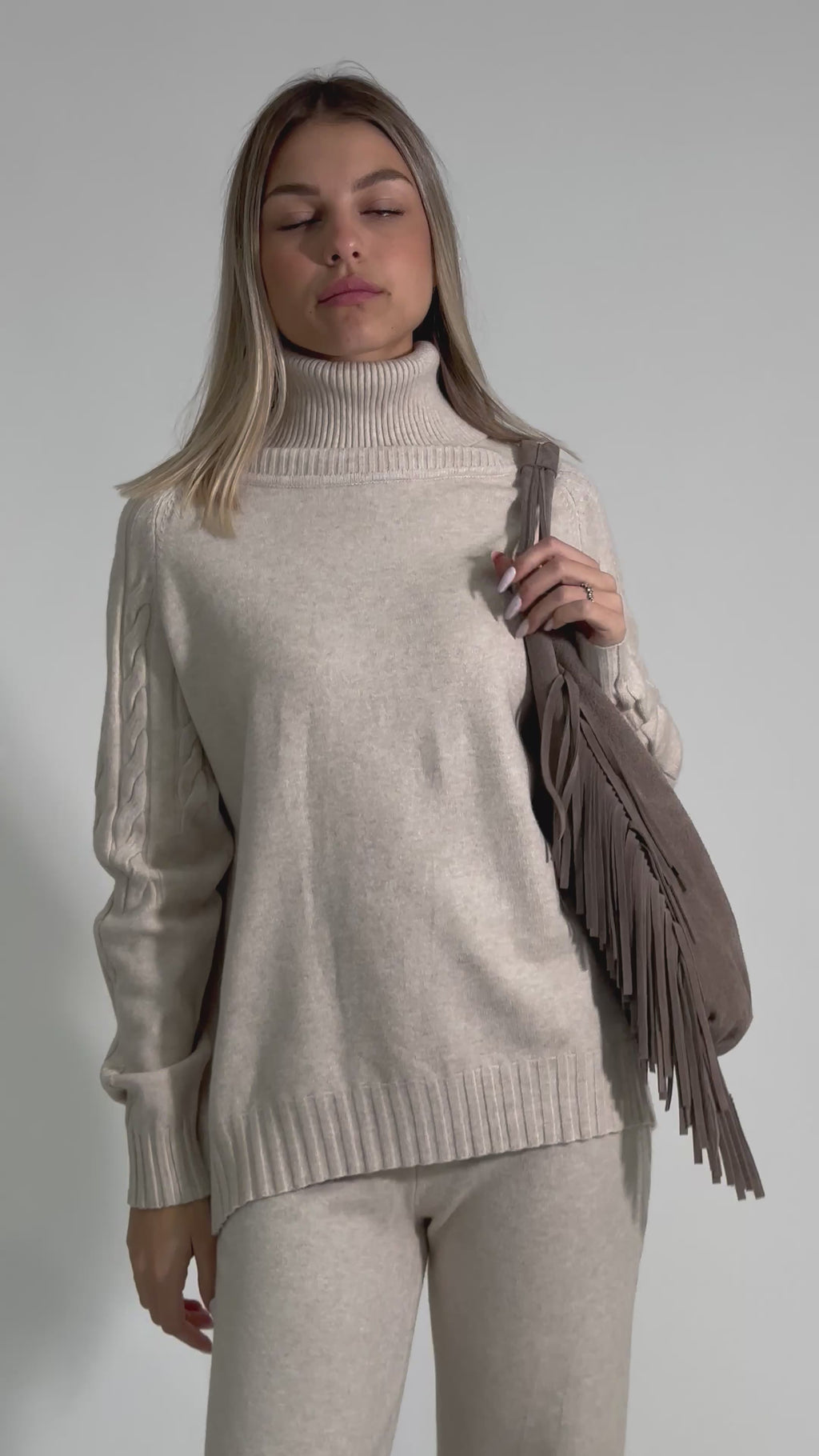 maglia calata con lavorazione a trecce e collo alto