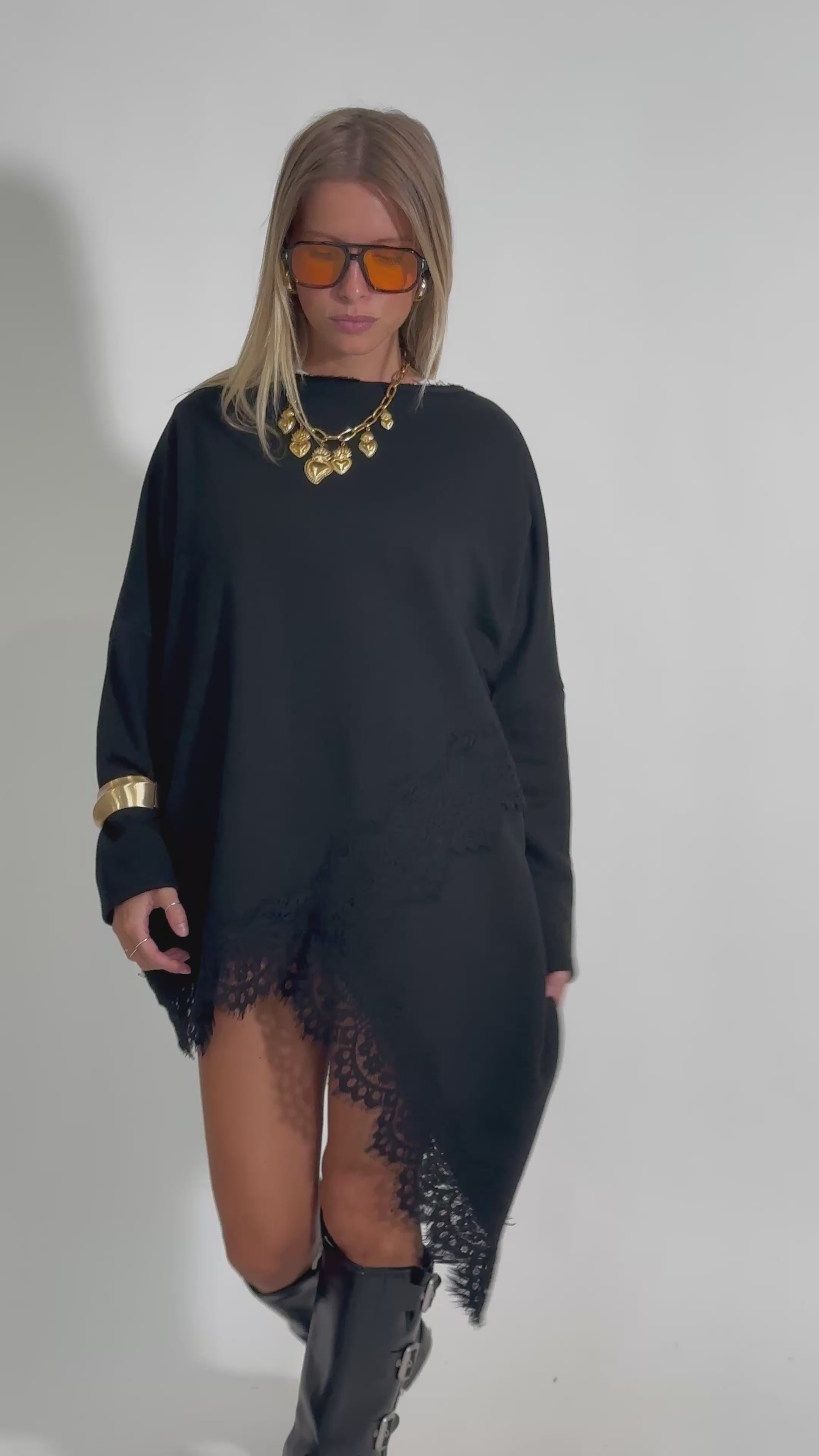 Felpa dal taglio over asimmetrica con inserti in pizzo.
