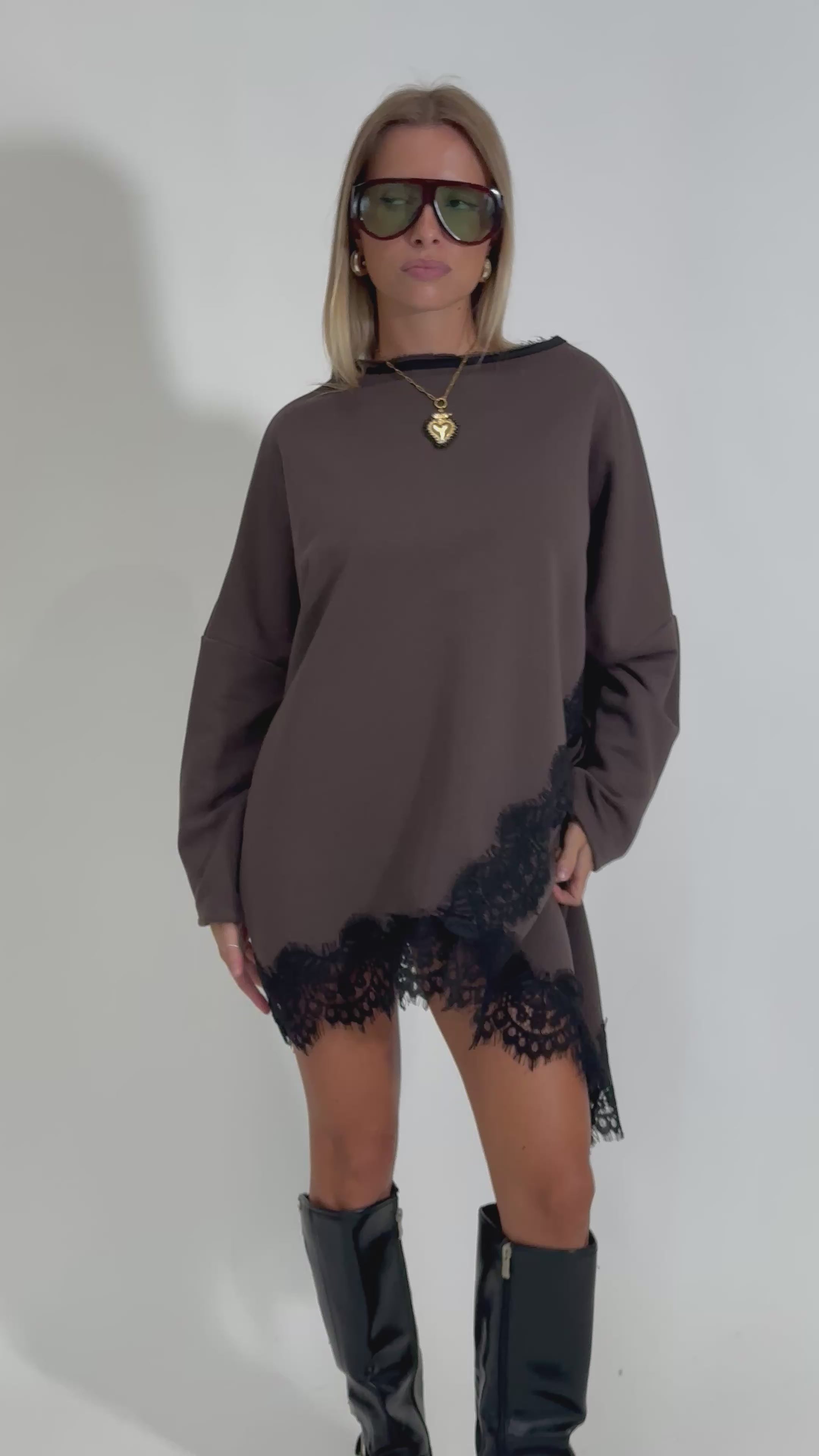Felpa garzata dal taglio over asimmetrica con inserti in pizzo.