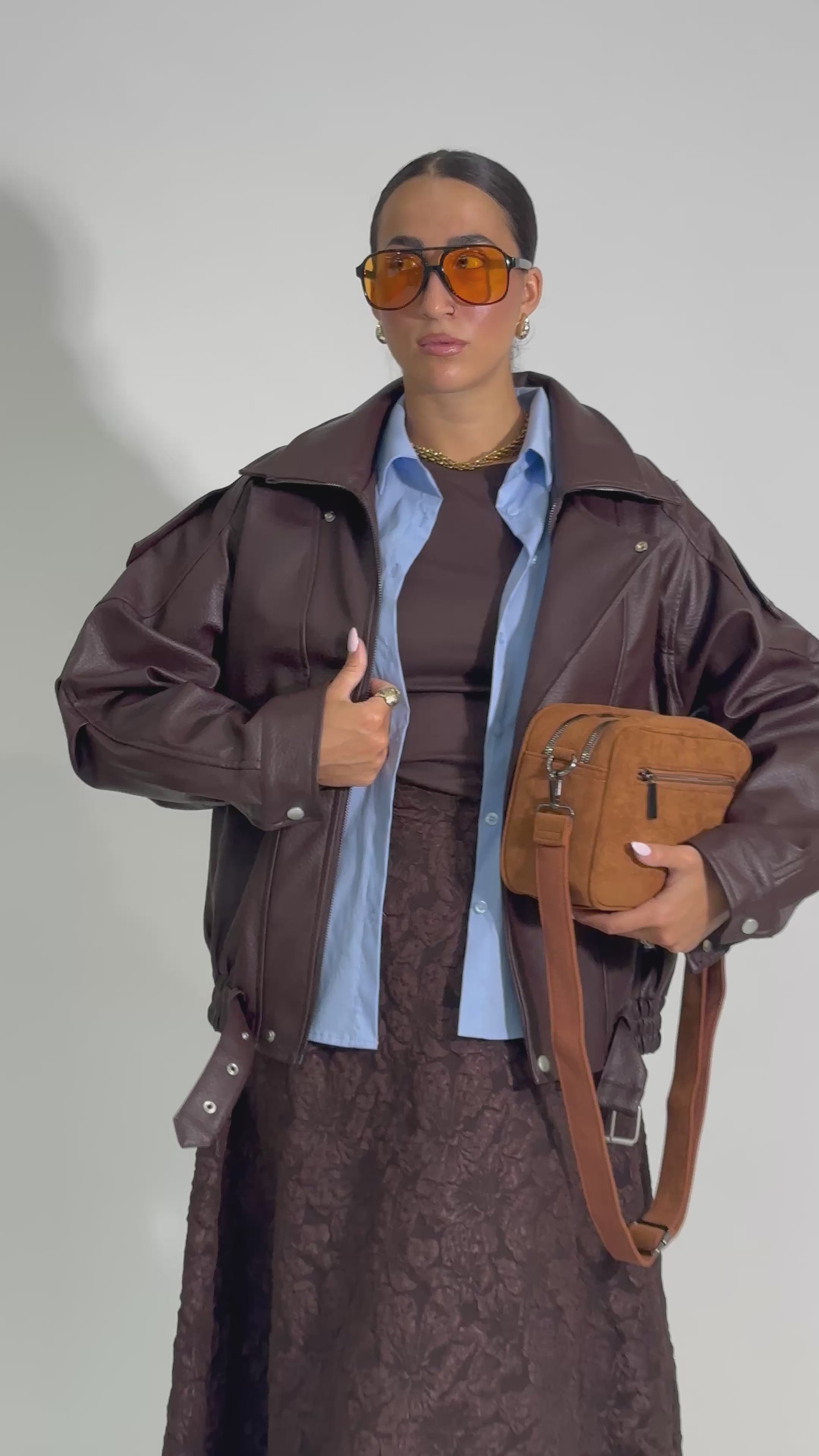 Chiodo in ecopelle foderato dal taglio over con chiusura a zip.