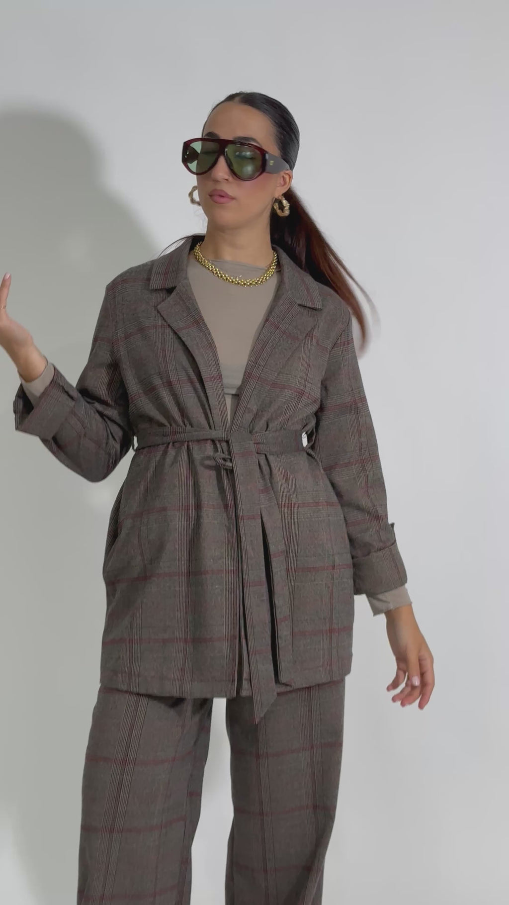 Giacca sfoderata in fantasia check con fusciacca, ferma maniche e tasche laterali.