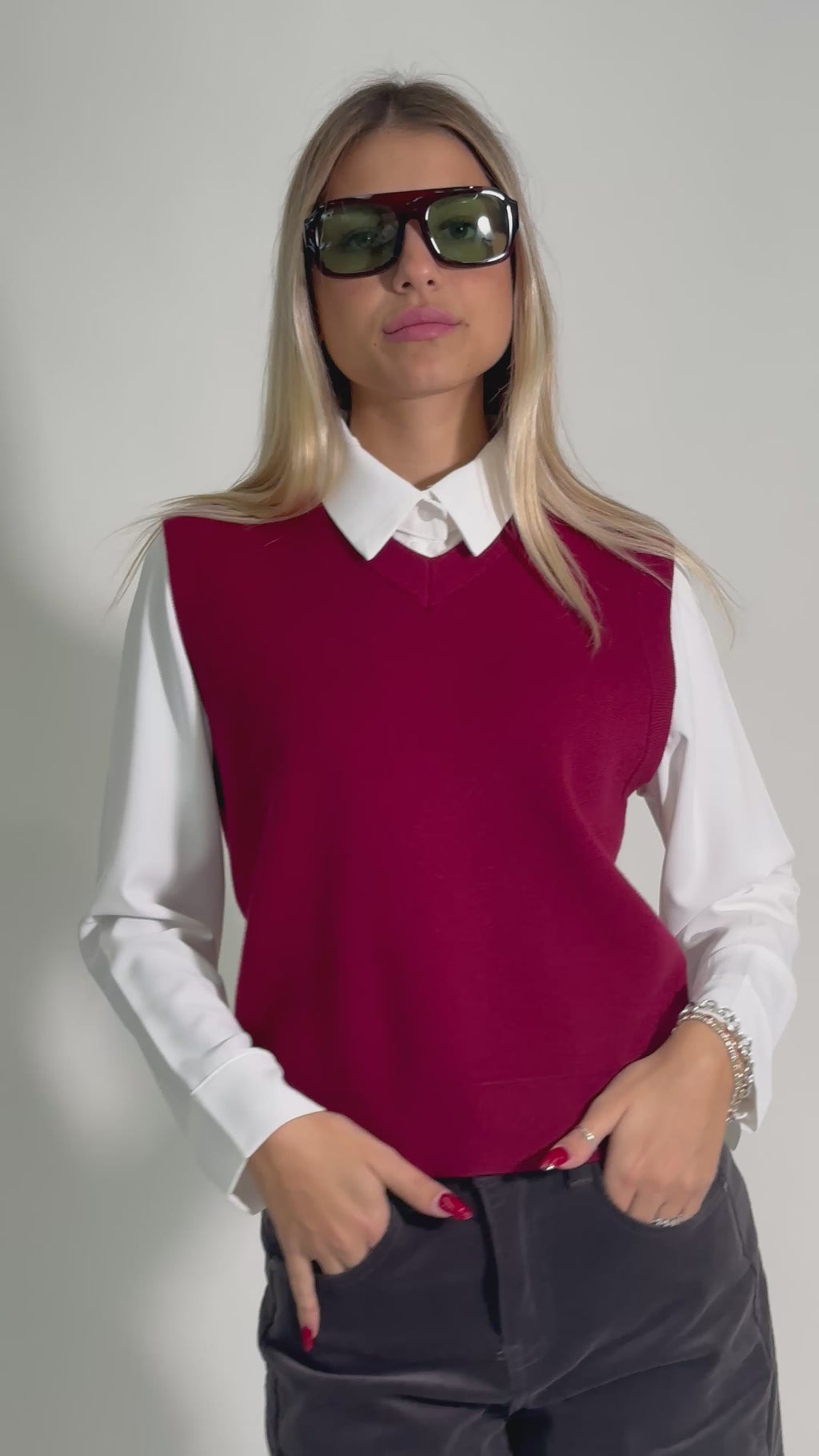 Gilet a maglia rasa in misto viscosa con scollo a V