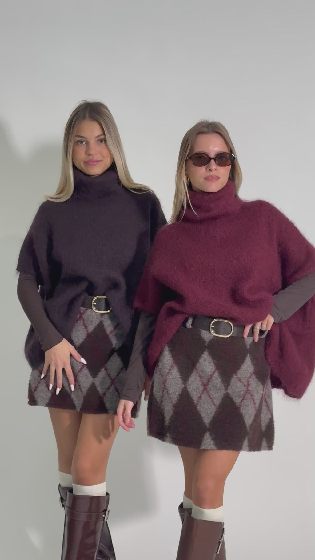 Gonna a rombi in lana cotta foderata con chiusura a zip laterale e cintura.