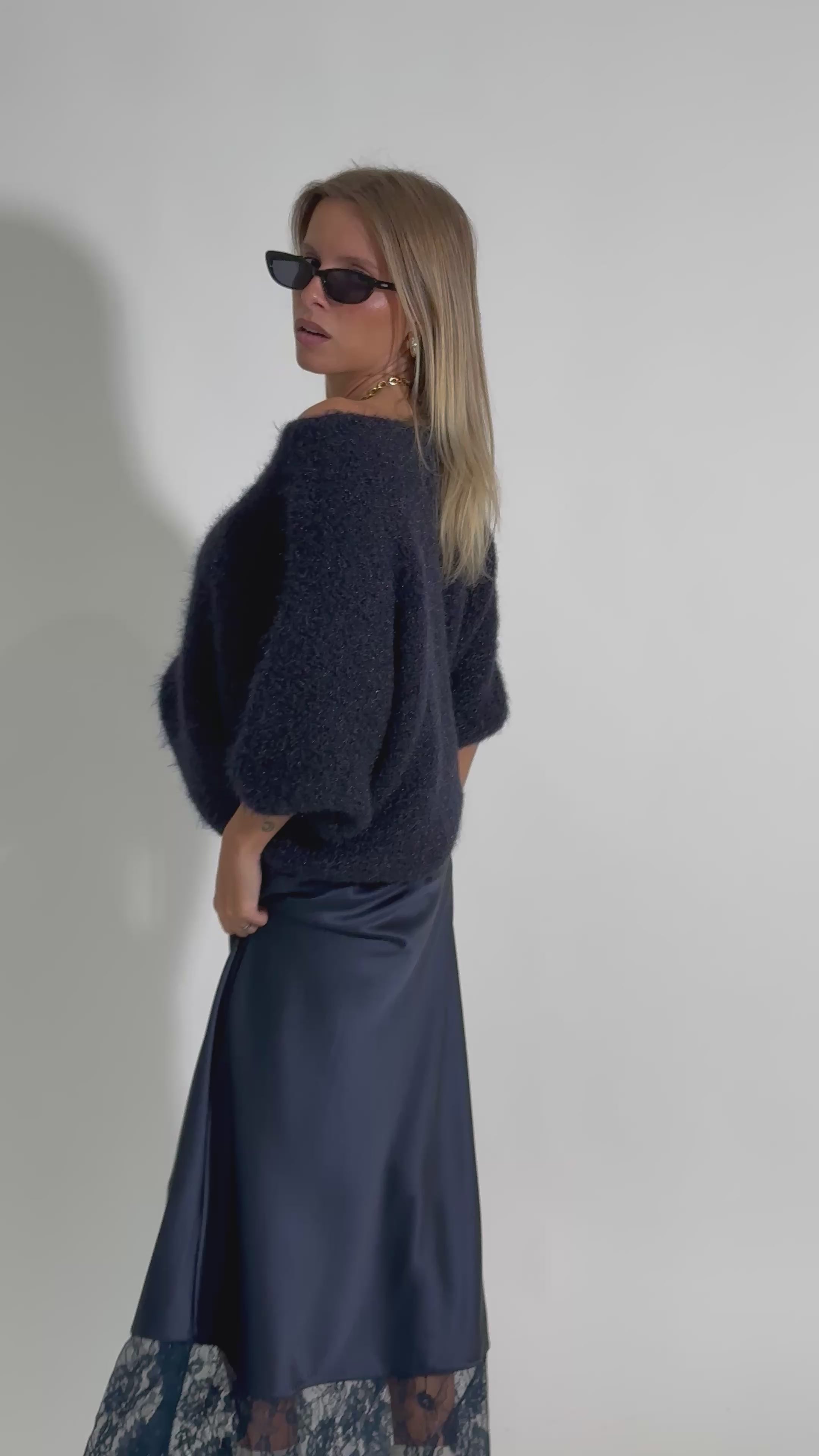 Gonna satin pizzo 4169 BLU