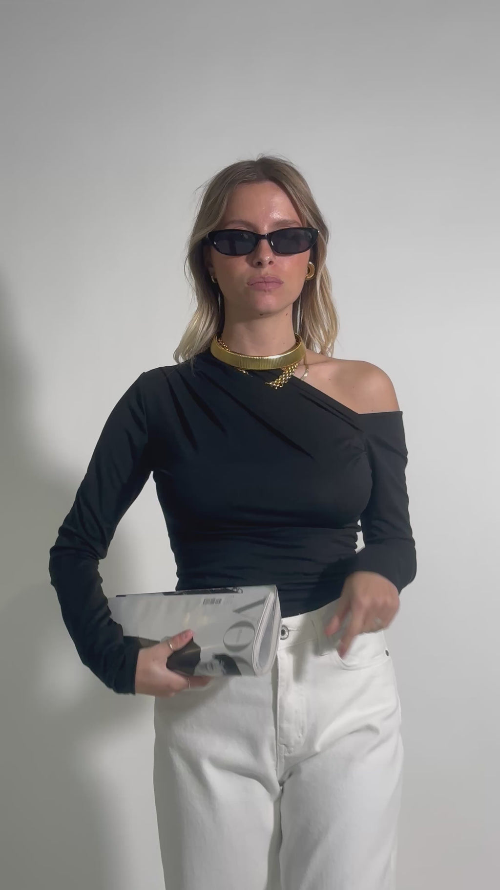 Pantalone in denim colorato, cinque tasche, elasticizzato, gamba ampia vita medio alta. Vestibilità regular.