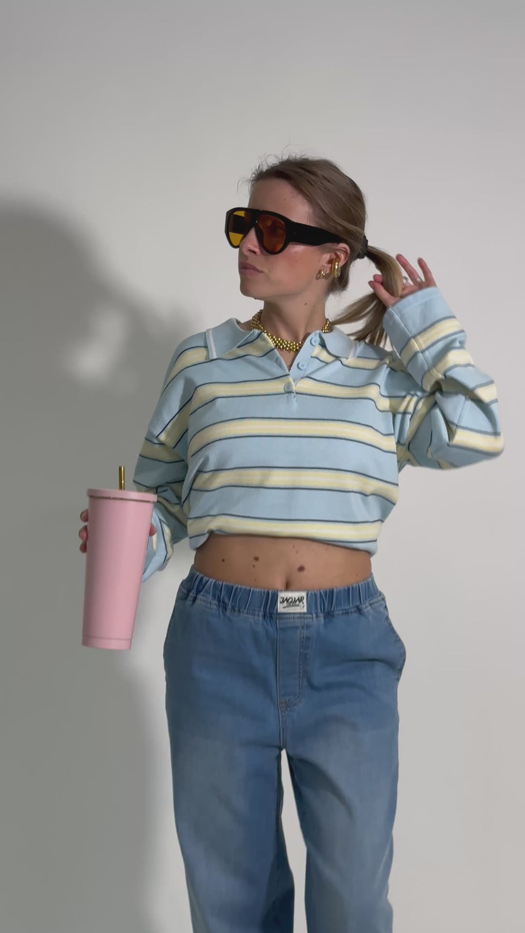 jeans elasticizzato con elastico in vita, gamba ampia vestibilità over.