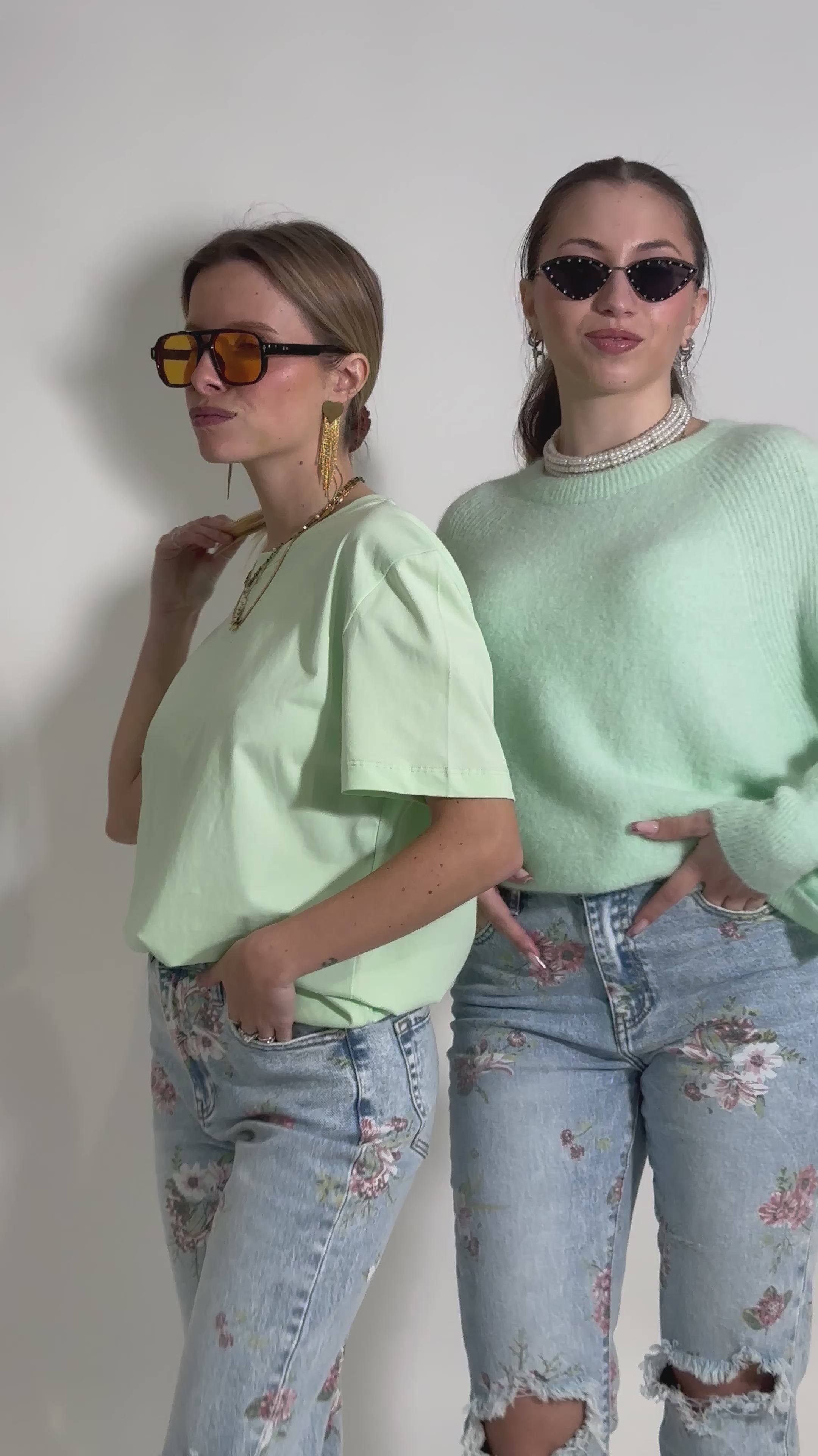 Maglia in misto alpaca con scollo rotondo e maniche calate. Presenta due spacchi laterali e rifiniture a coste. Vestibilità morbida