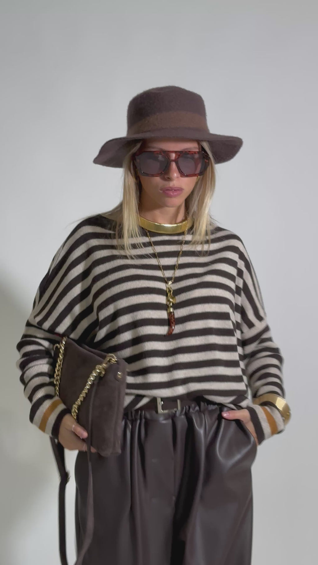 Maglia dal taglio largo in cashmere blend super confortevole con trama a righe, profilo a contrasto e spacchi laterali.