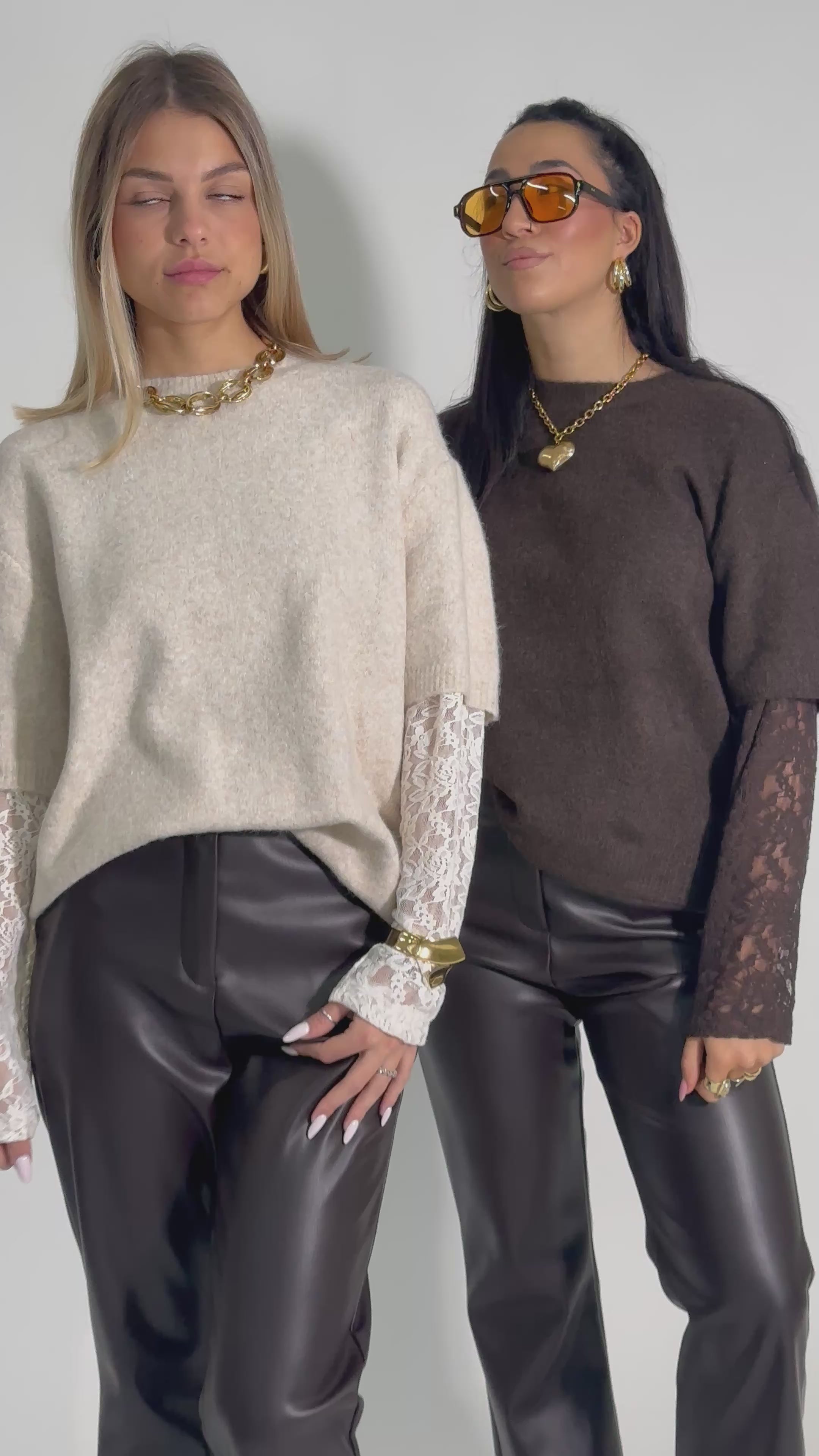 Maglia in misto viscosa con dettaglio manica in pizzo.