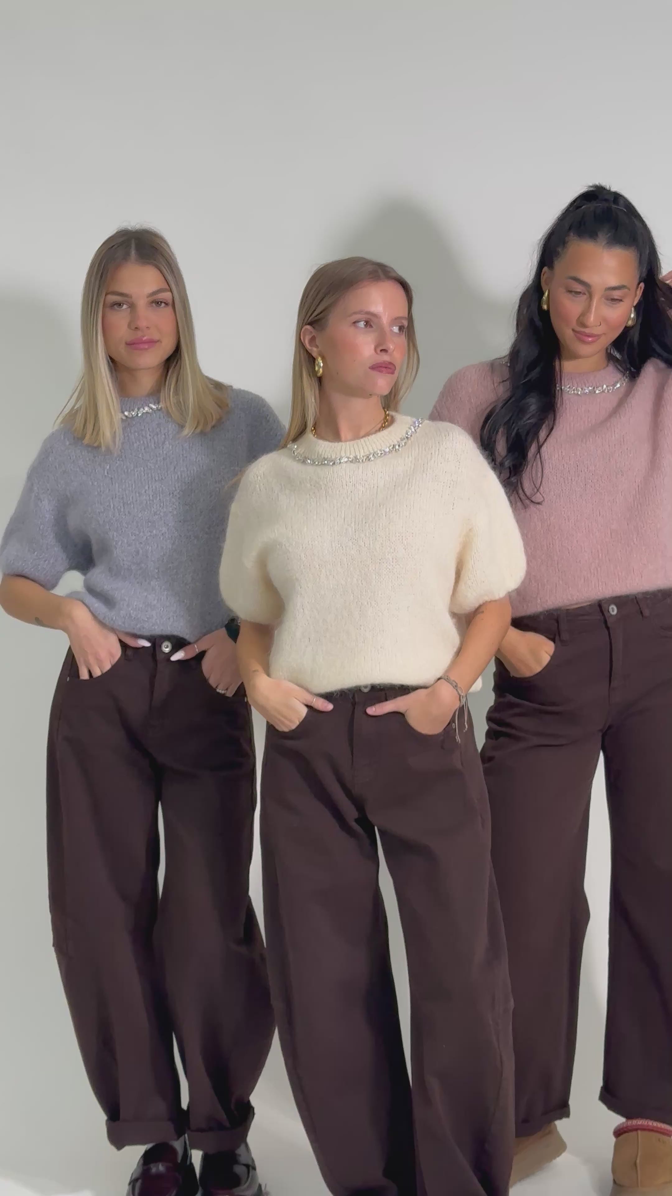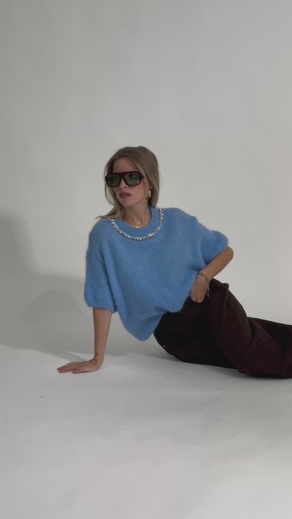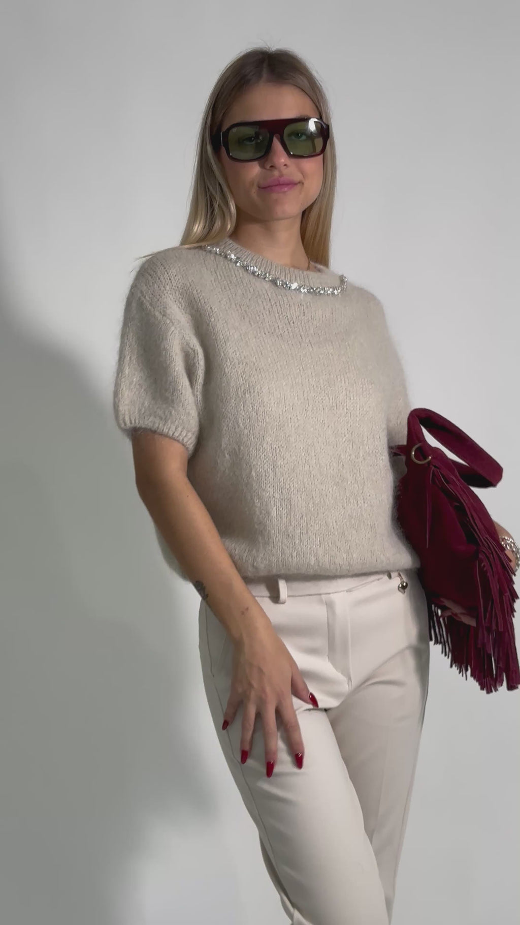 Maglia a scatoletta in misto mohair con applicazioni cristalli.