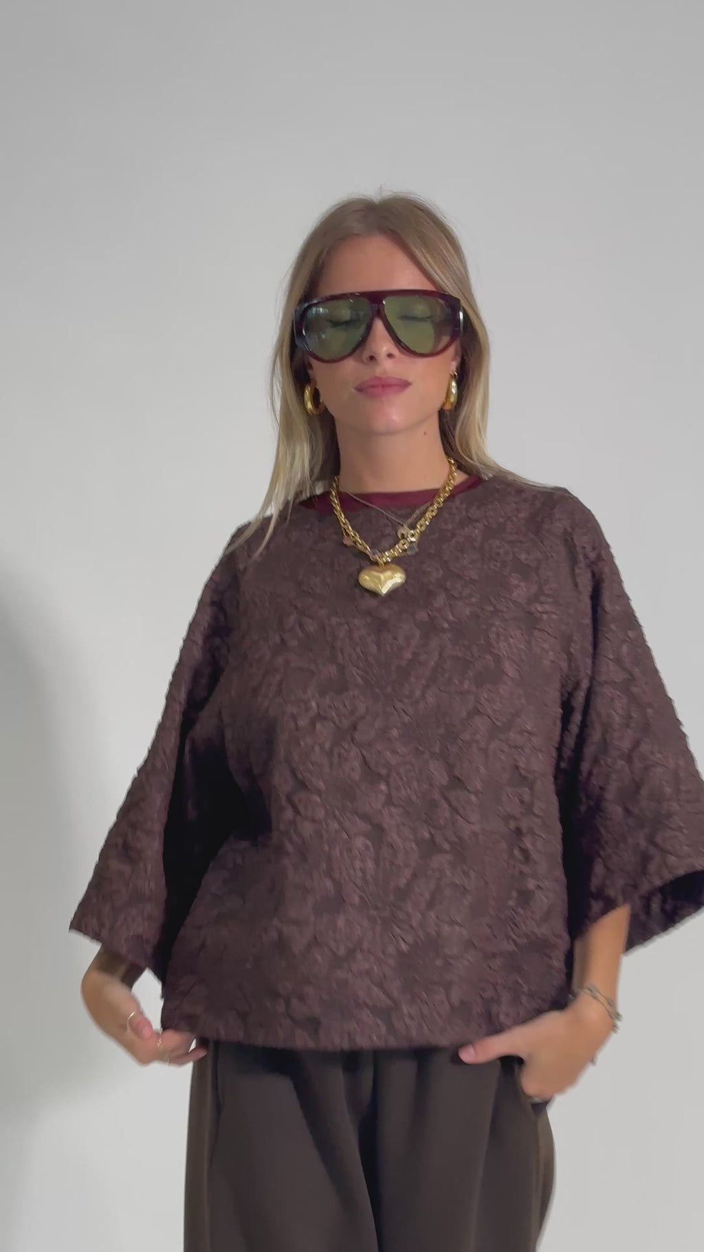 Maglia a scatoletta in tessuto damascato con maniche a 3/4