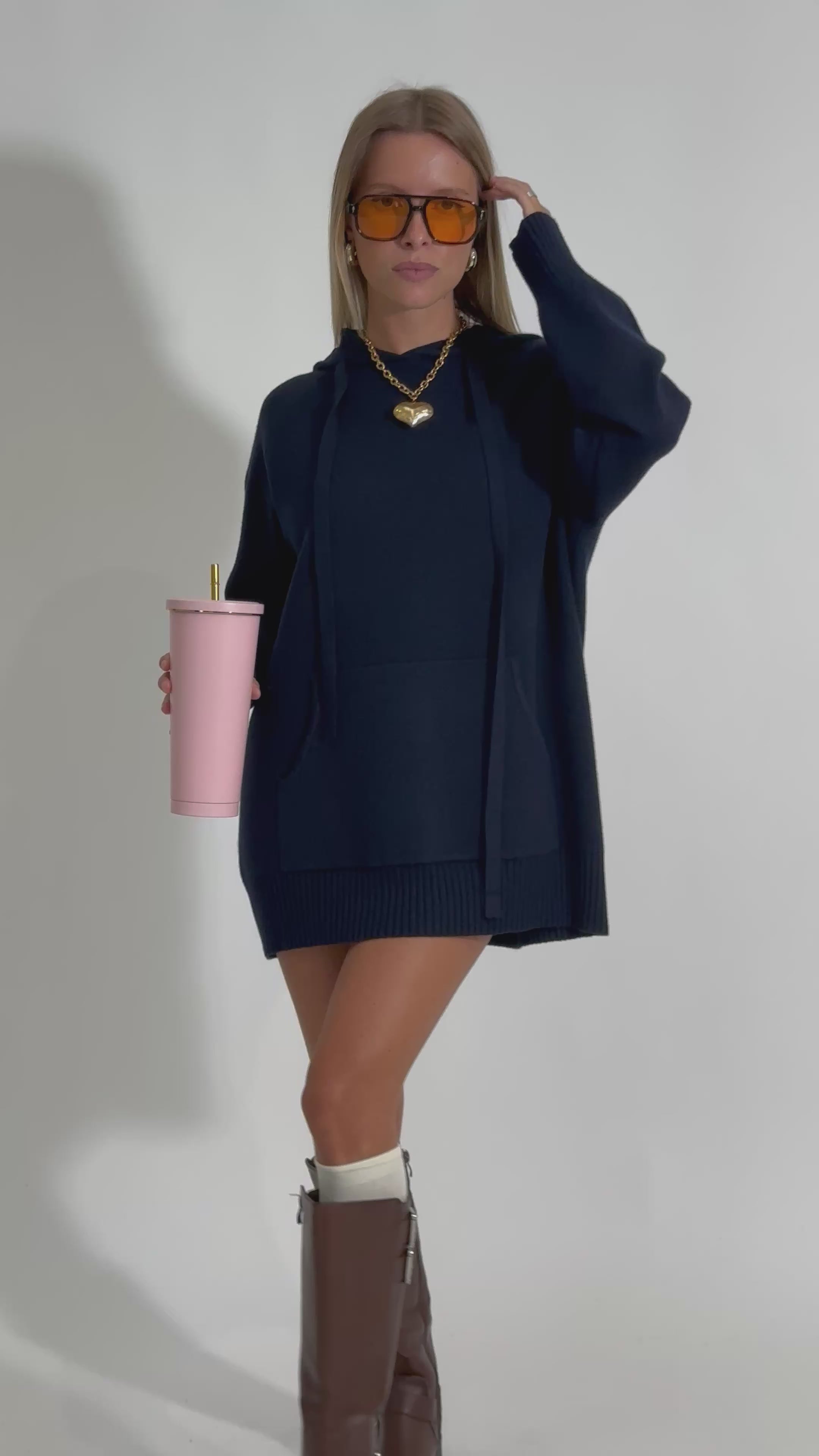 Maglia dritta in misto filo di viscosa con cappuccio.