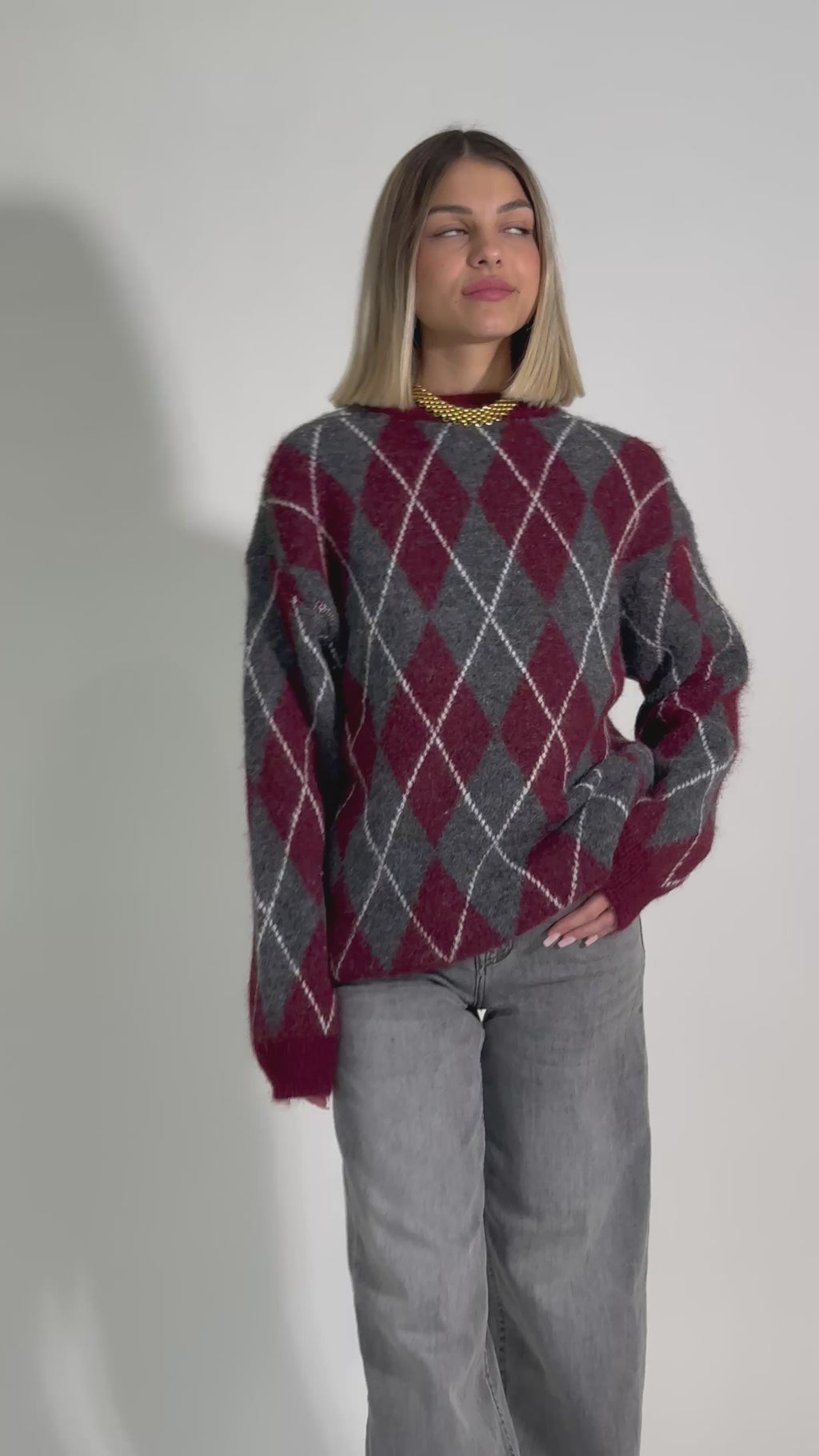Maglia fluffy rombi 6651 BURGUNDY
