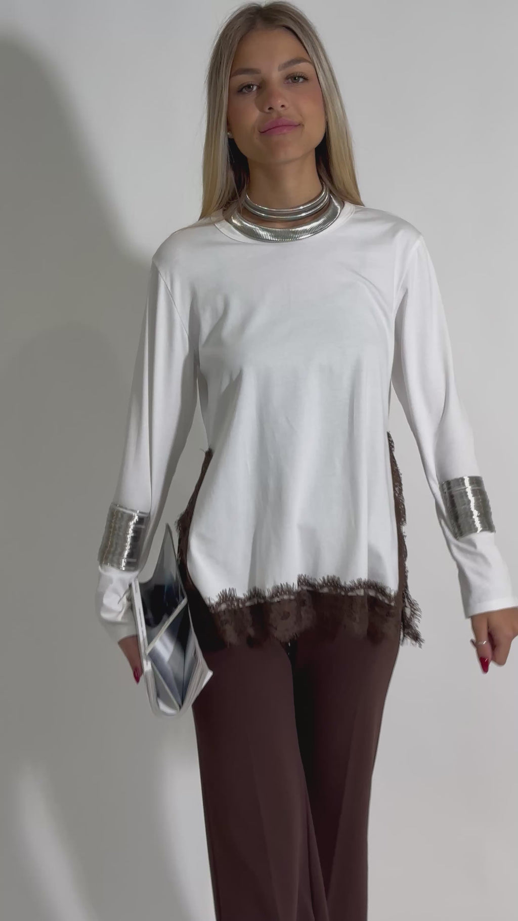 Maglia in jersey con spacchi laterali e inserti in pizzo a contrasto.
