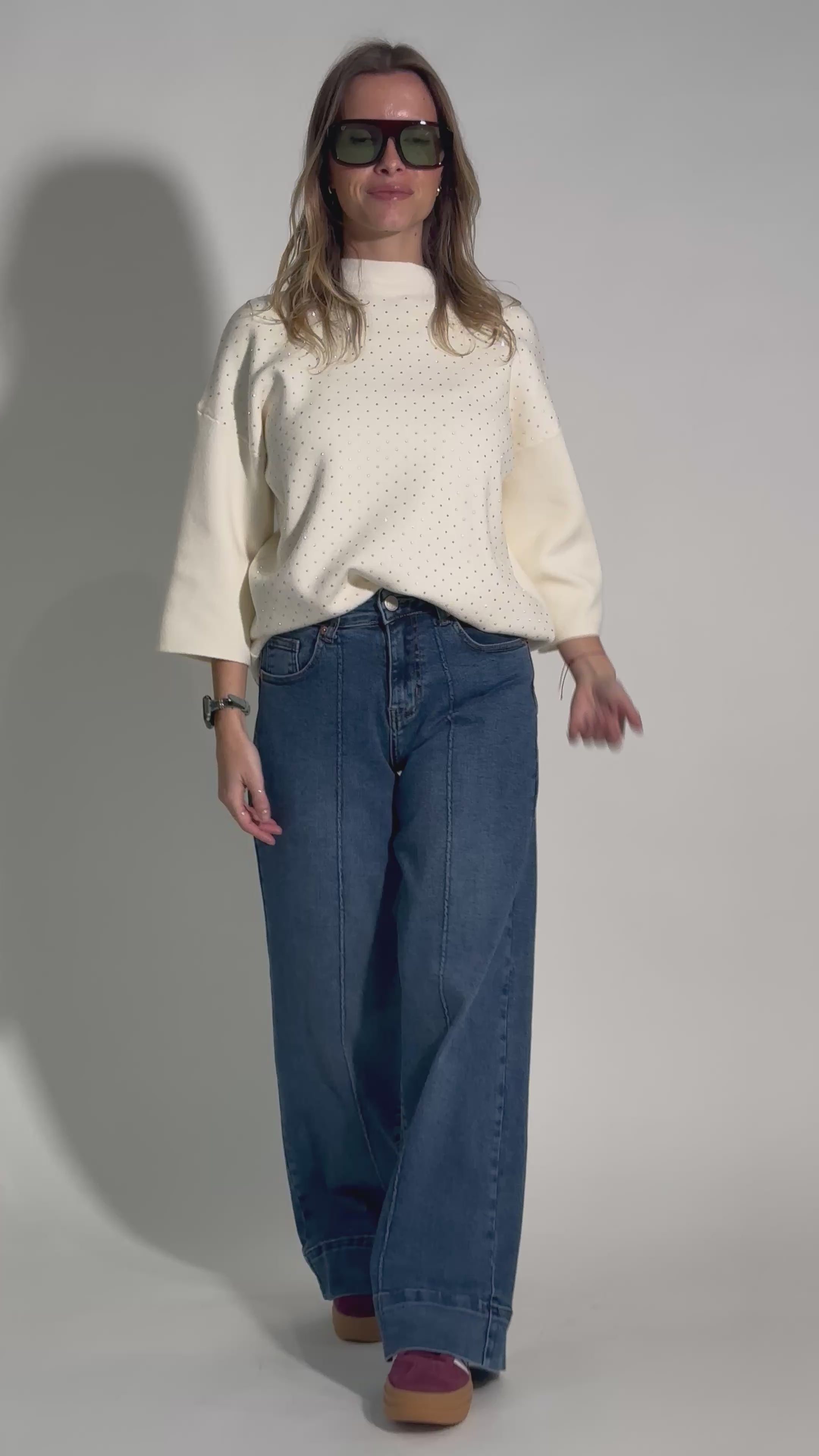 Maglia in misto viscosa con micro borchie e manica 3/4.