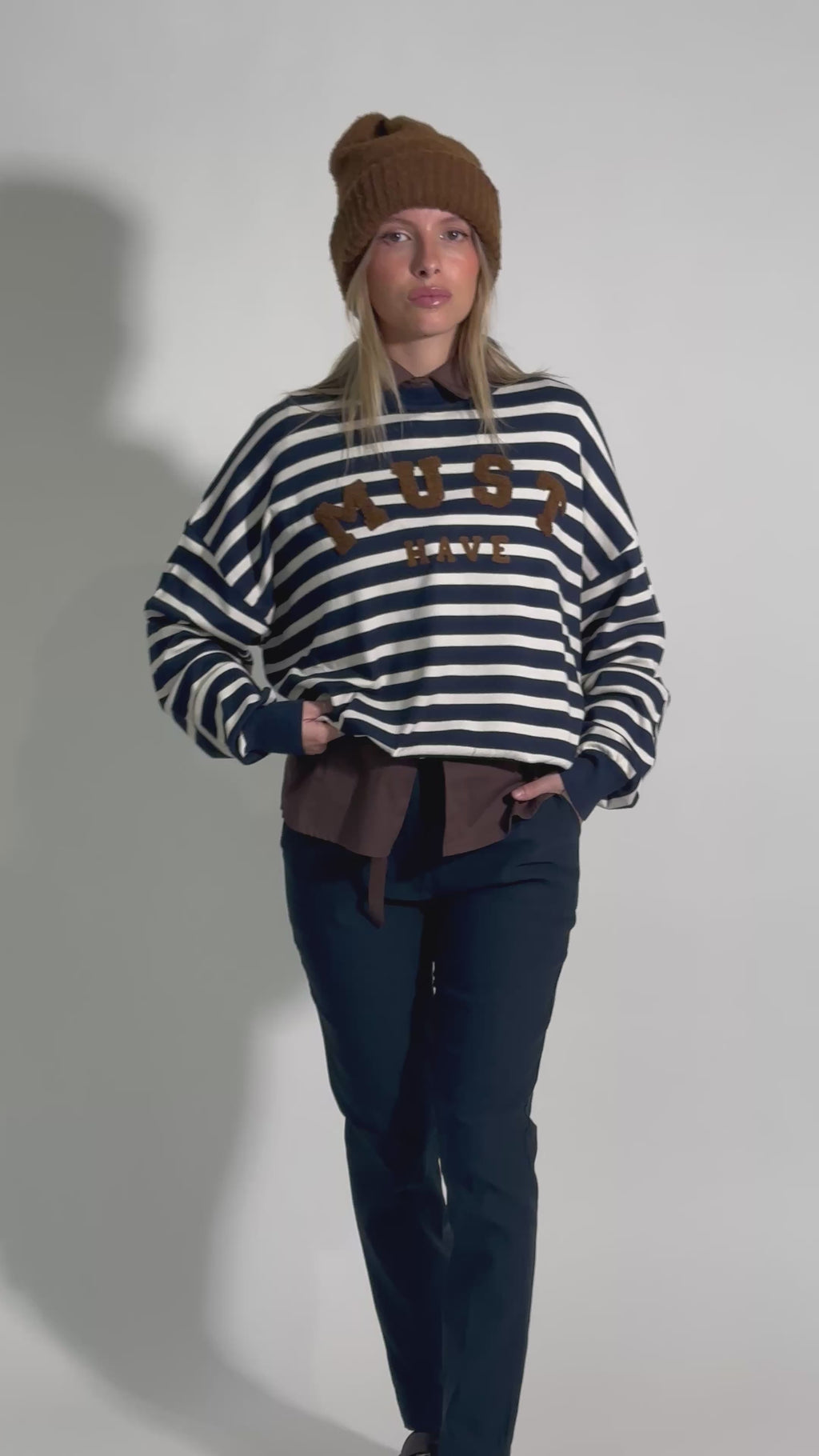 Maglia a righe in misto viscosa con scritta ricamata "must have".