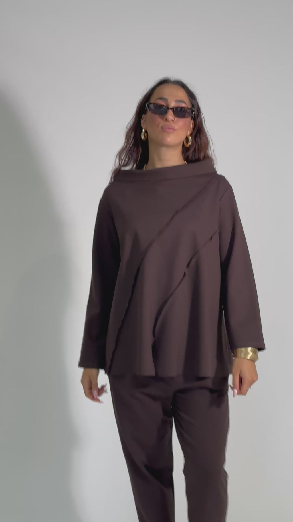 Maglia dal taglio regular con collo a cratere e profili a taglio vivo.