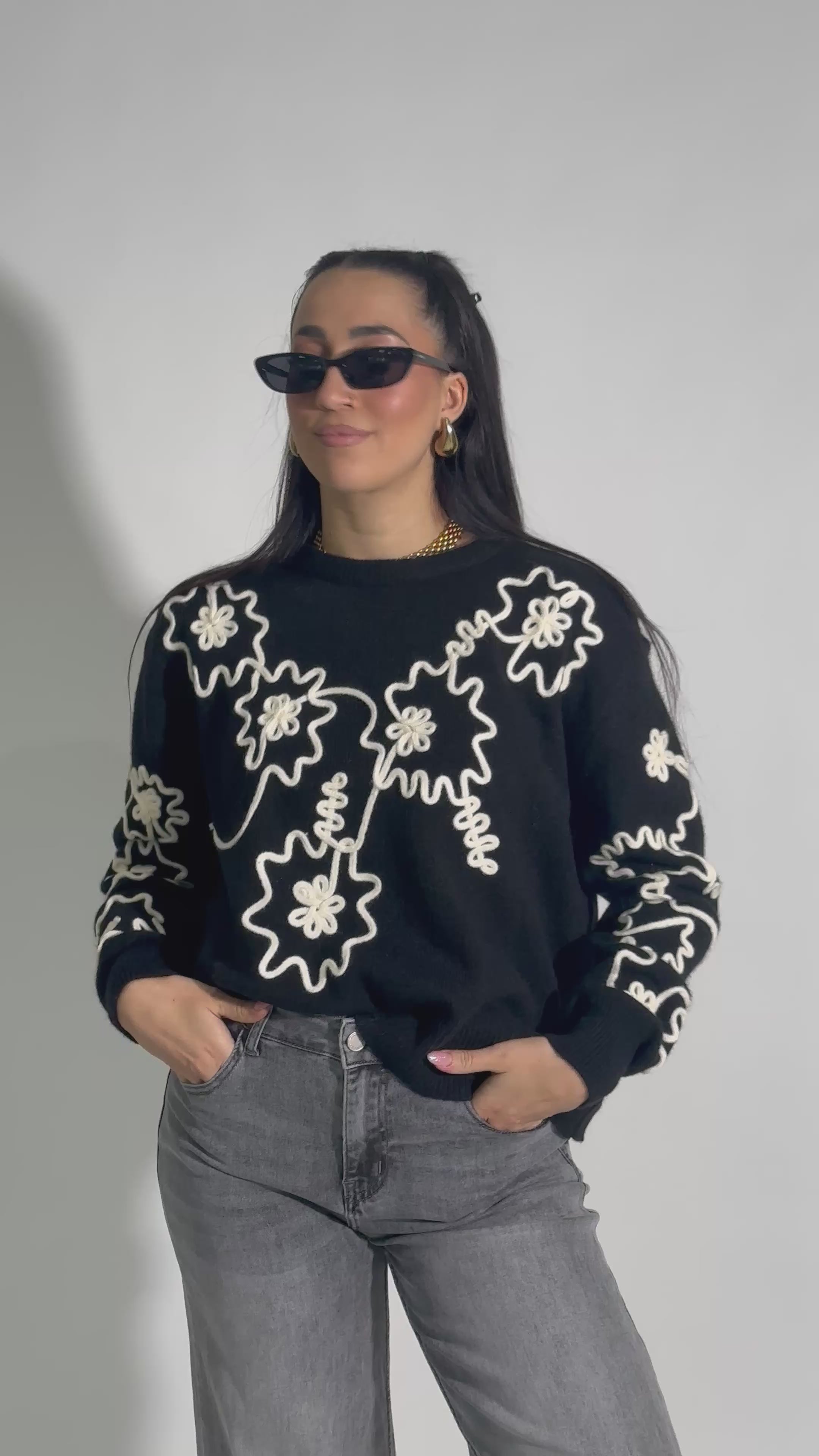 Maglia con ricamo, morbida e confortevole.