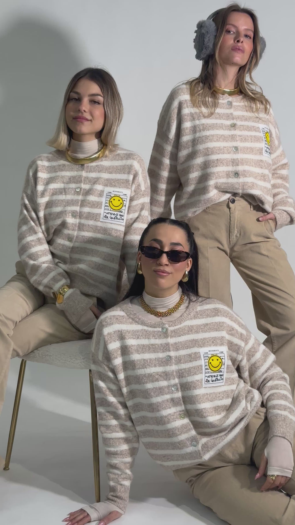 Maglia in misto viscosa con "smile" ricamato e chiusura a bottoni frontali.