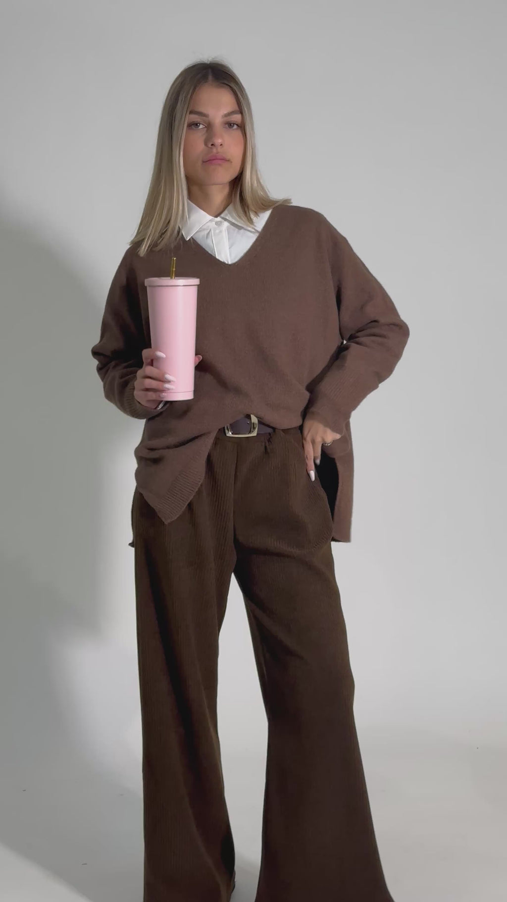 Maglia calata in misto cashmere super confortevole con scollo a V.