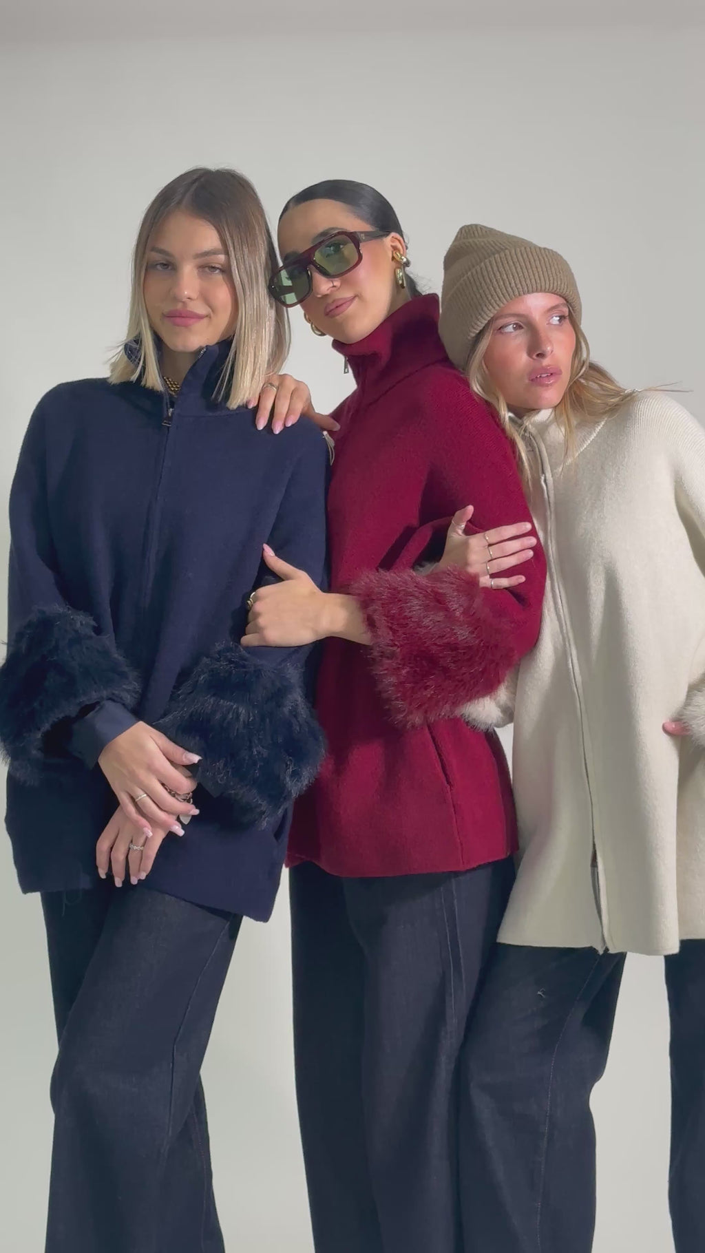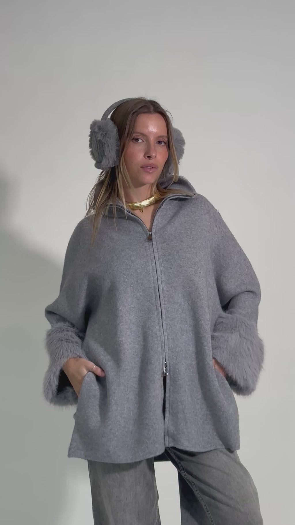 Maglia/cardigan dal taglio dritto in misto viscosa con chiusura a zip, tasche laterali e dettaglio polsi in eco pelliccia.