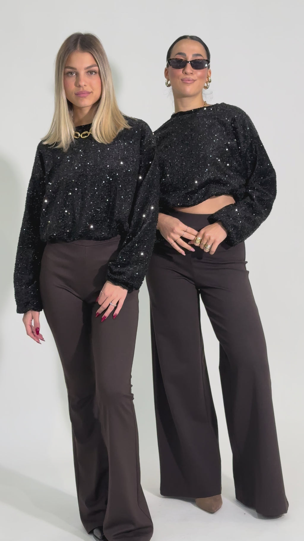 Pantalone a palazzo elasticizzato vita alta in punto milano.