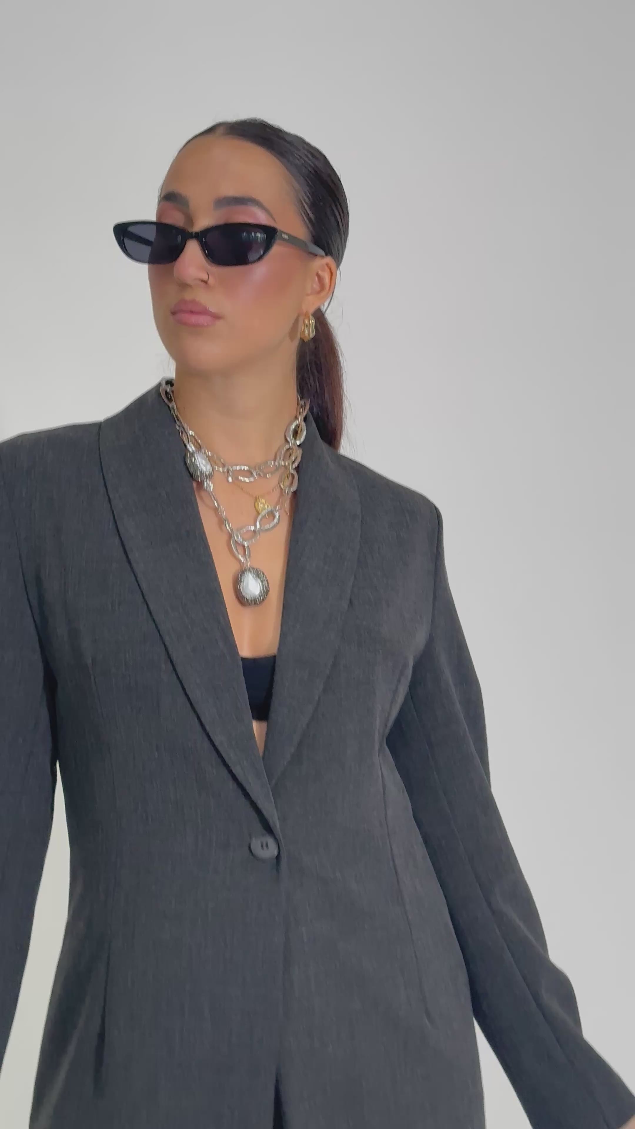 Pantalone a palazzo in fresco lana con pinces, tasche laterali e passanti per cintura.