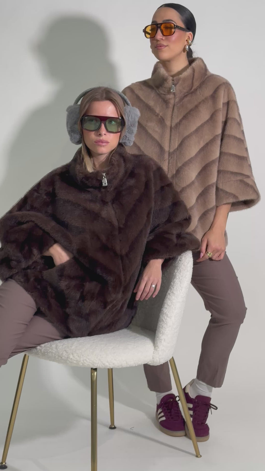 Eco pelliccia maniche tre quarti tasche laterali chiusura con cerniera.