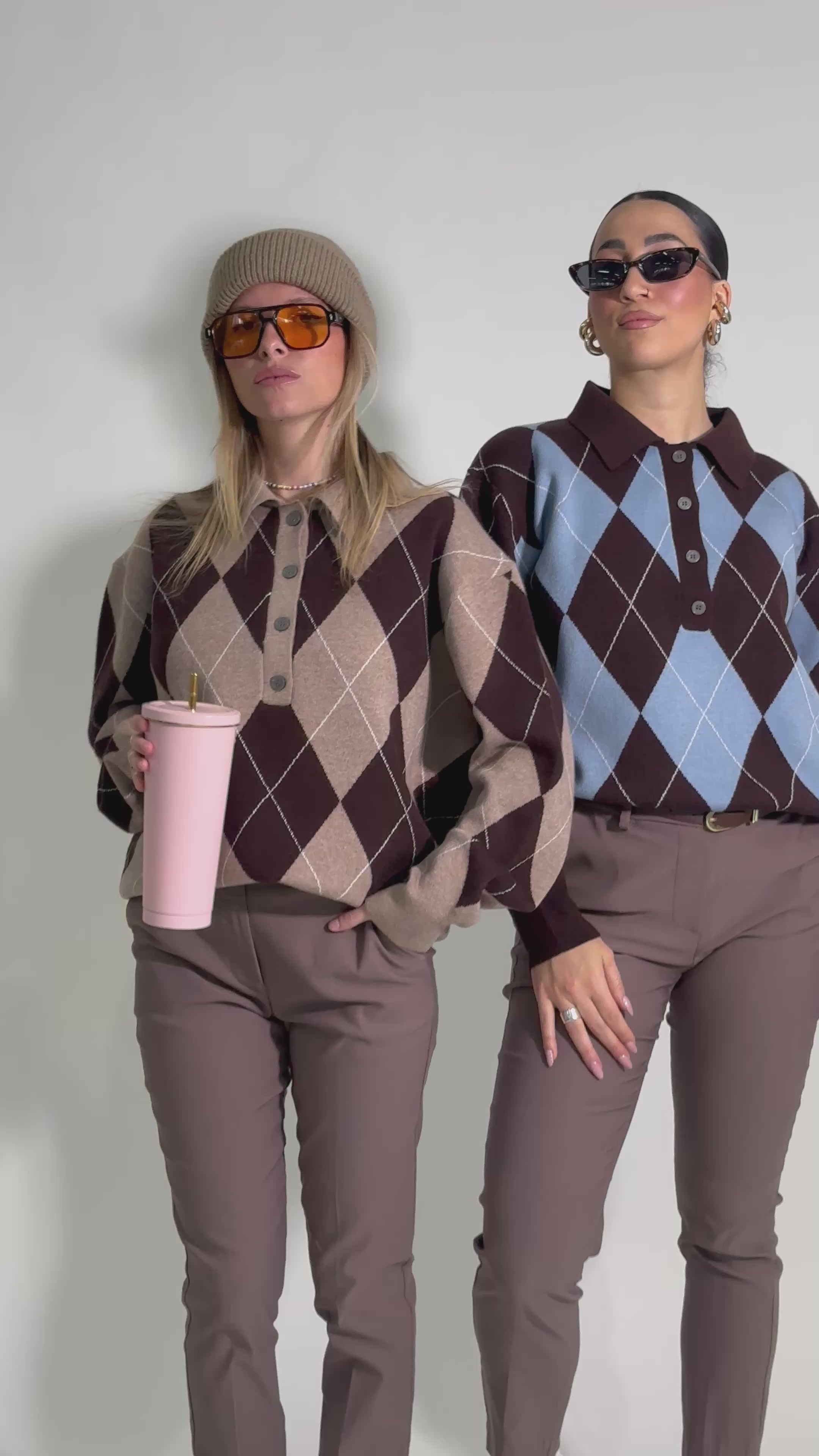Maglia polo con fantasia a rombi in misto lana, vestibilità ampia.