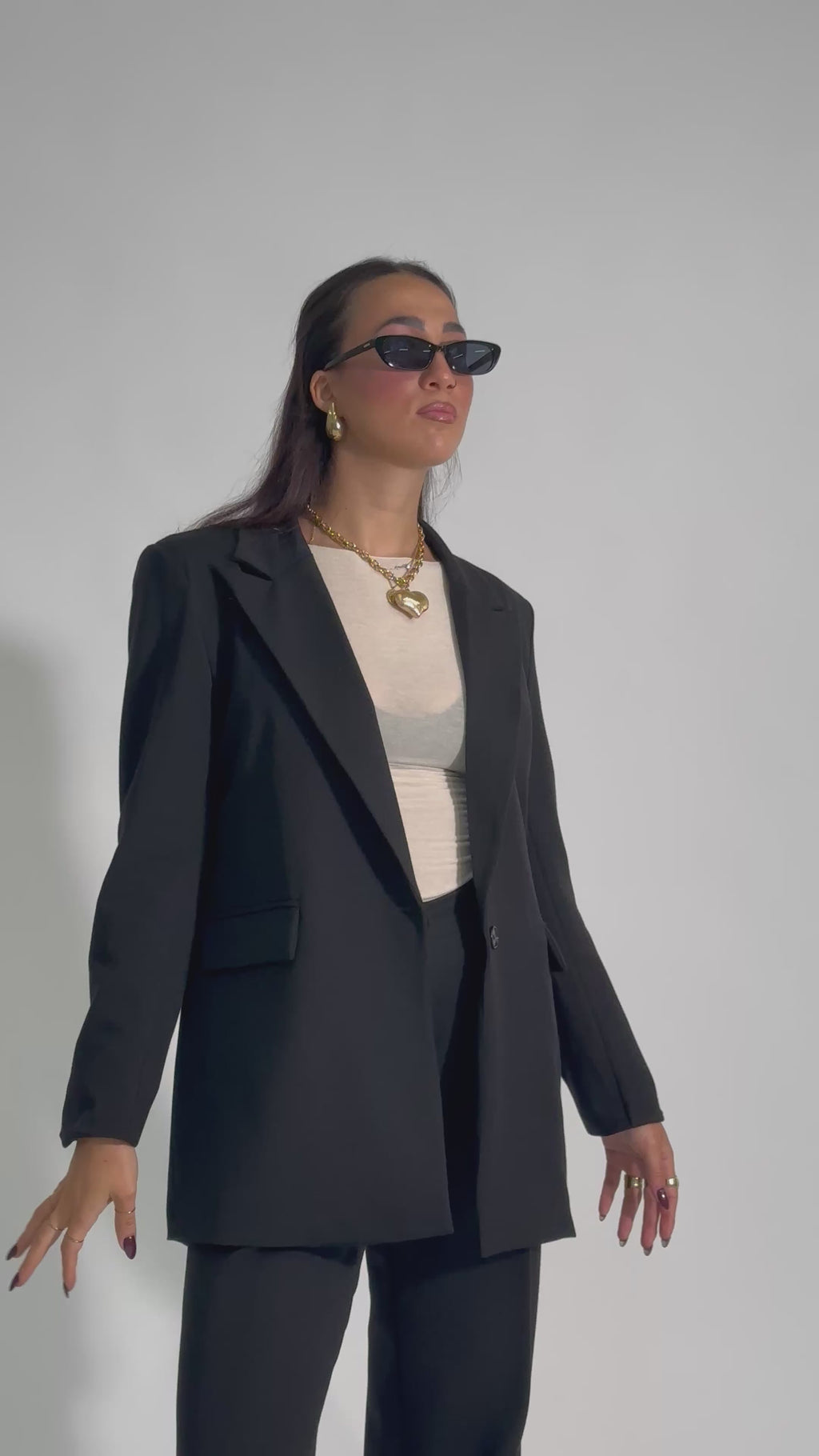 Giacca mono petto foderata dal taglio dritto con spalline rinforzate e tasche a patta