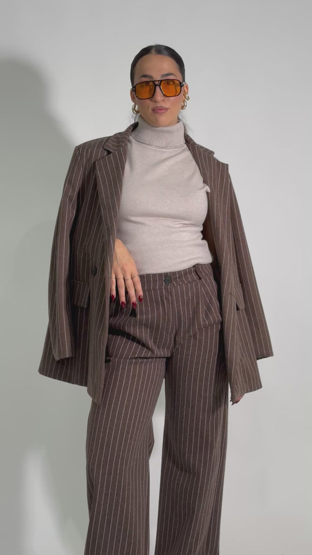 pantalone a palazzo con vita elastica posteriore, pences e tasche laterali.